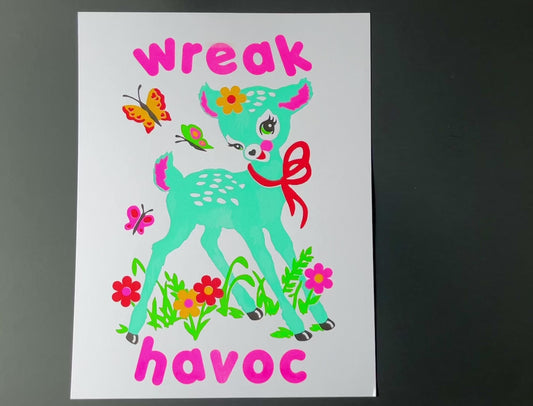 Cute Retro Deer Wreak Havoc Risograph Art Print