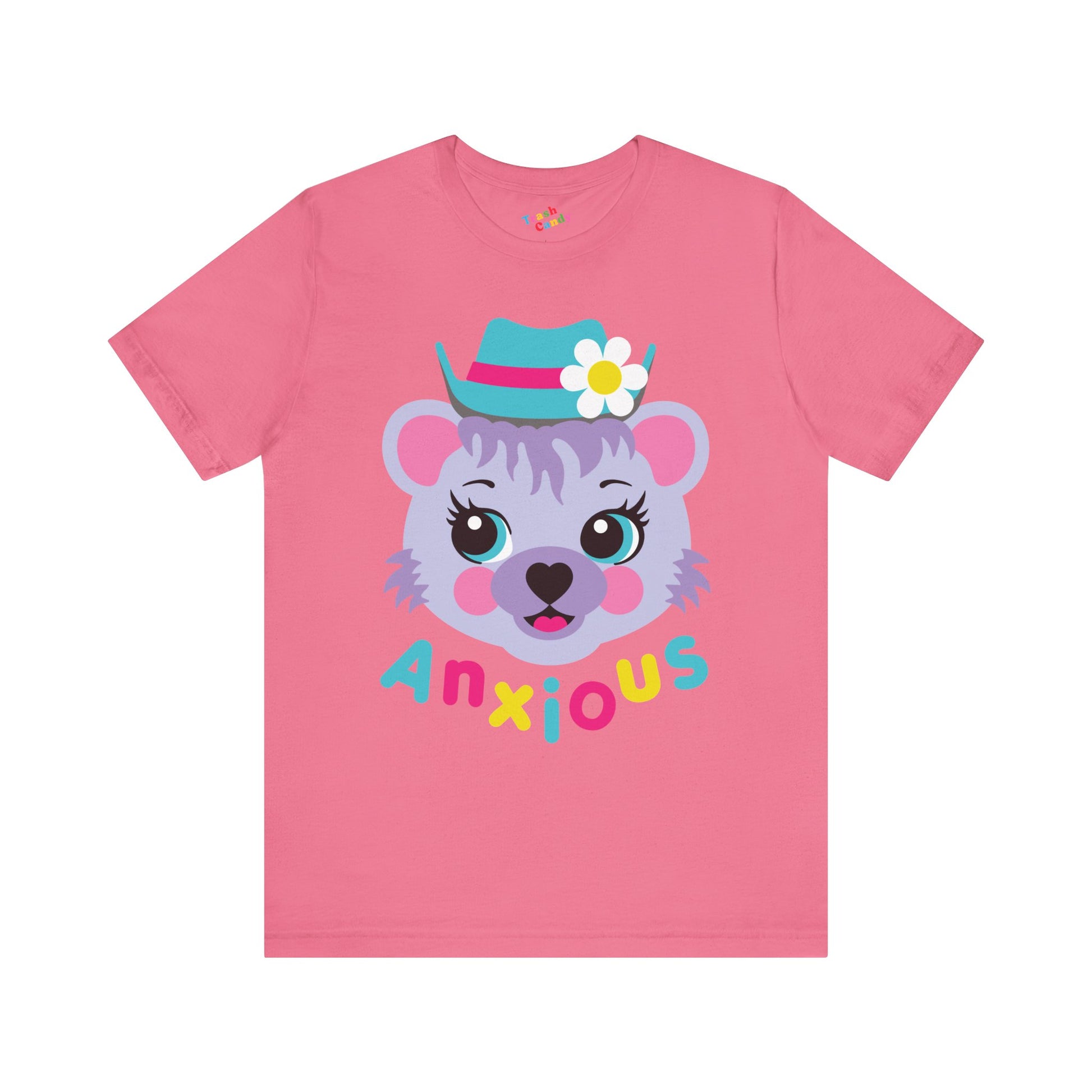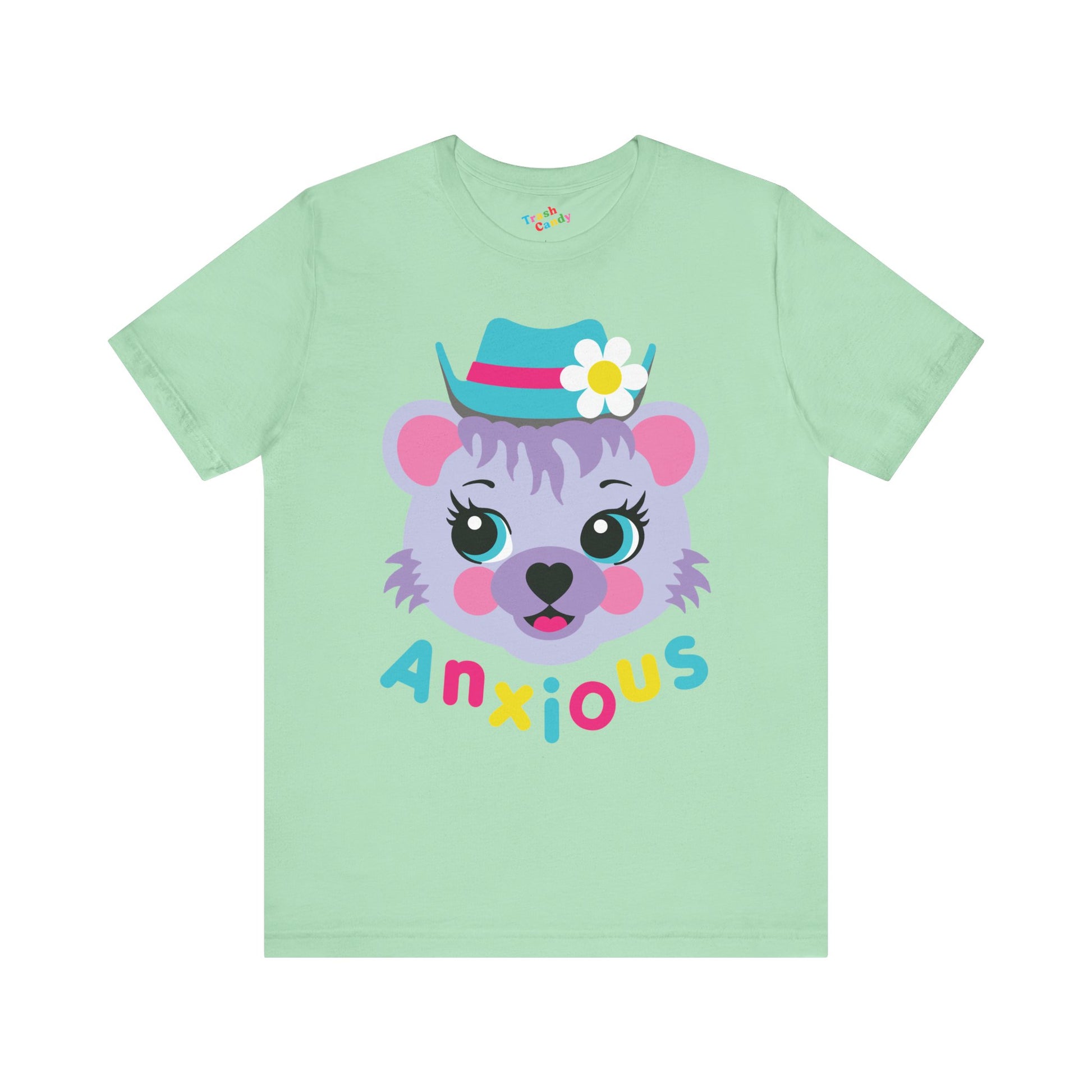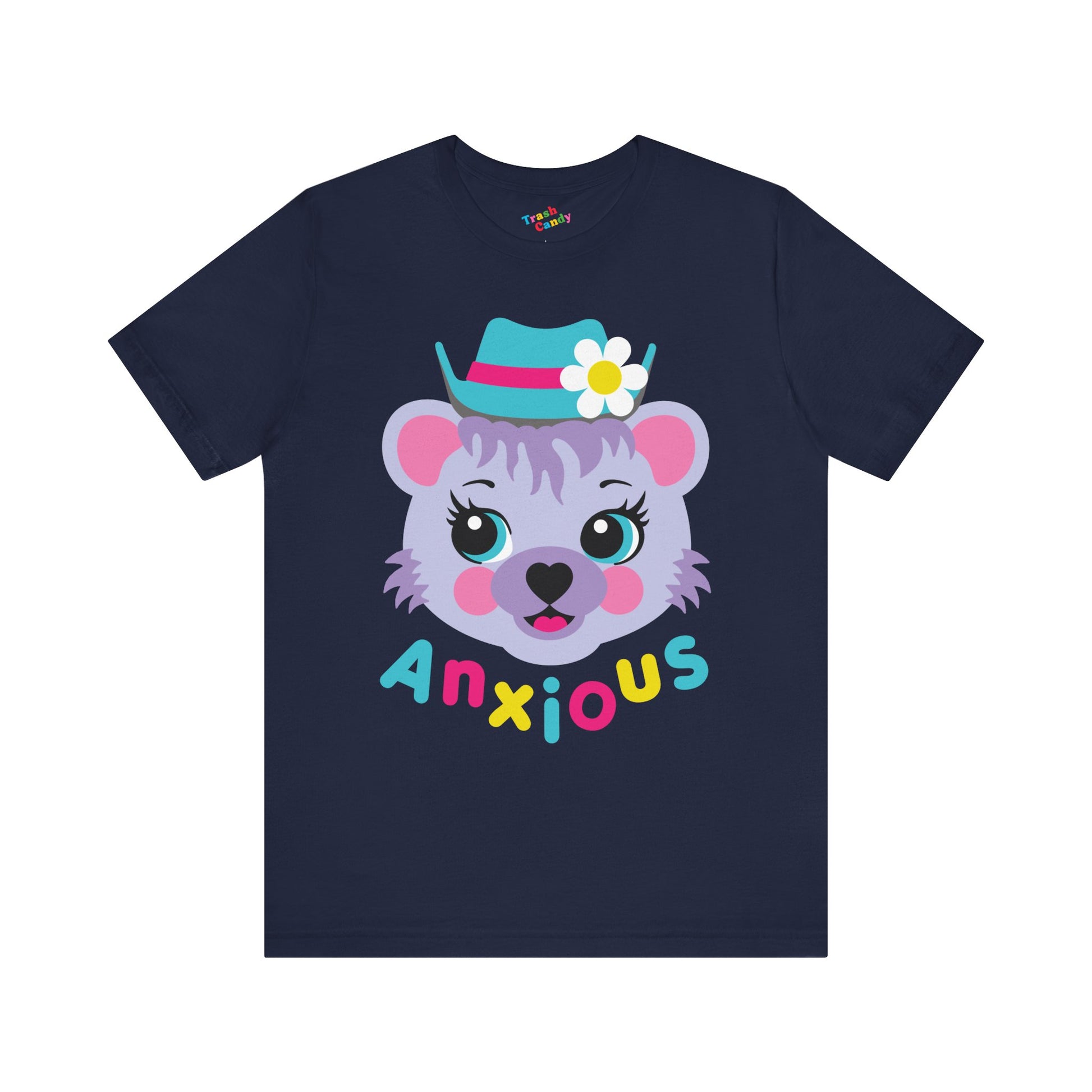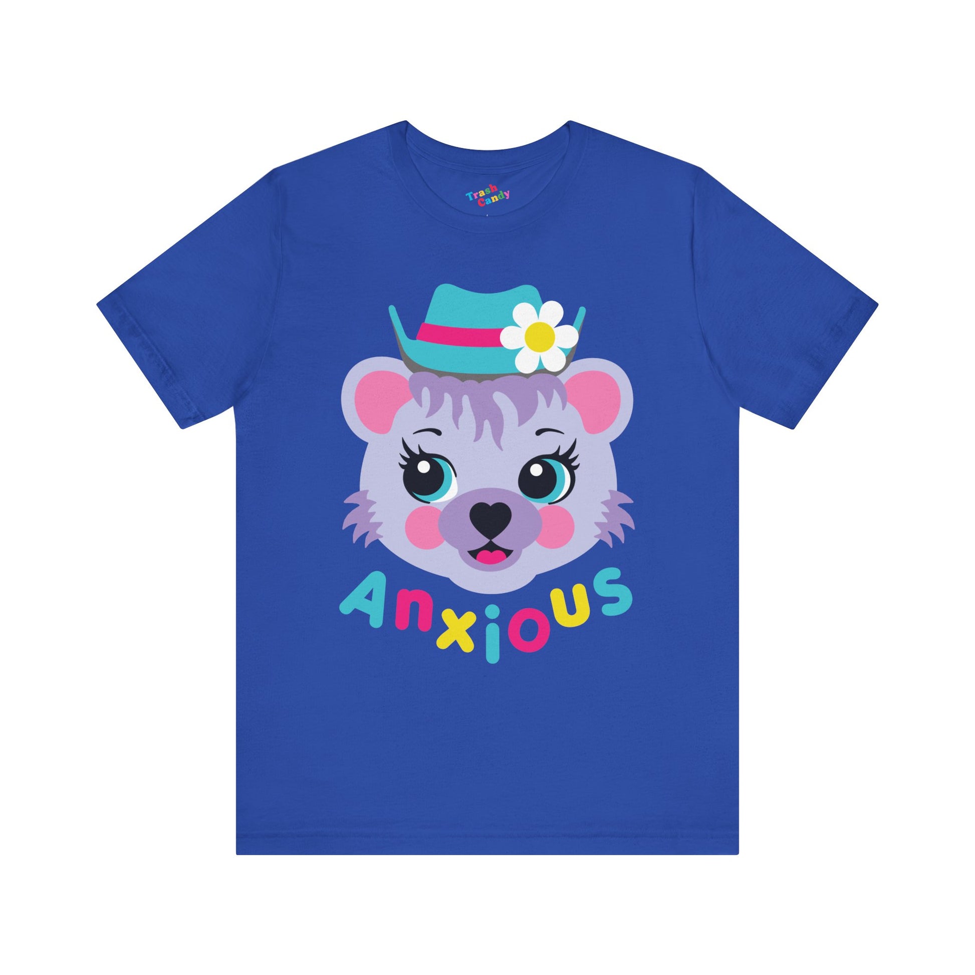 Anxious bear - cute retro unisex tee, featuring our exclusive Punky Tails character - "Bluebearry!" Also available in women's sizes.