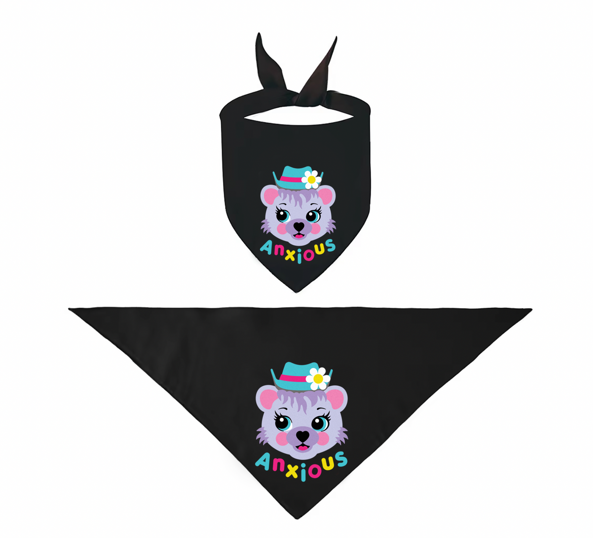 Anxious - cute retro pet bandana! This 100% cotton bandana features our exclusive Punky Tails character "Bluebearry," and is available in three sizes.