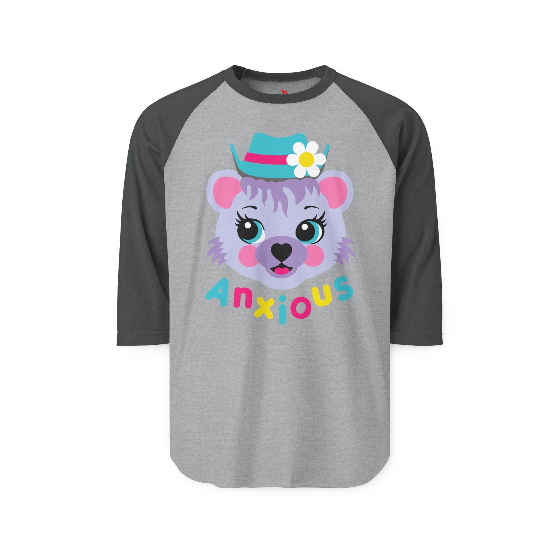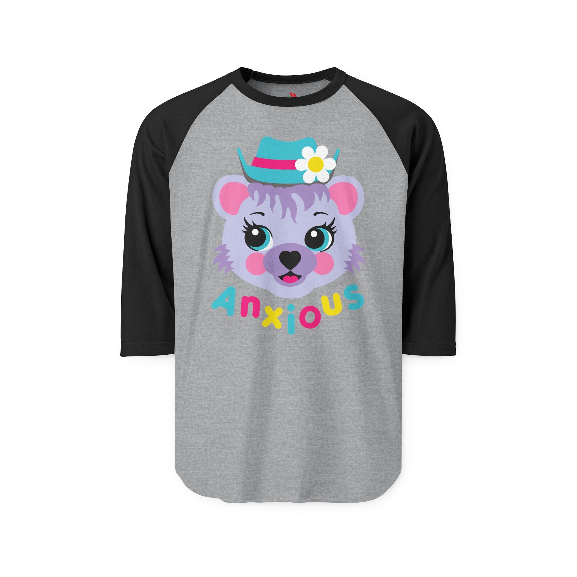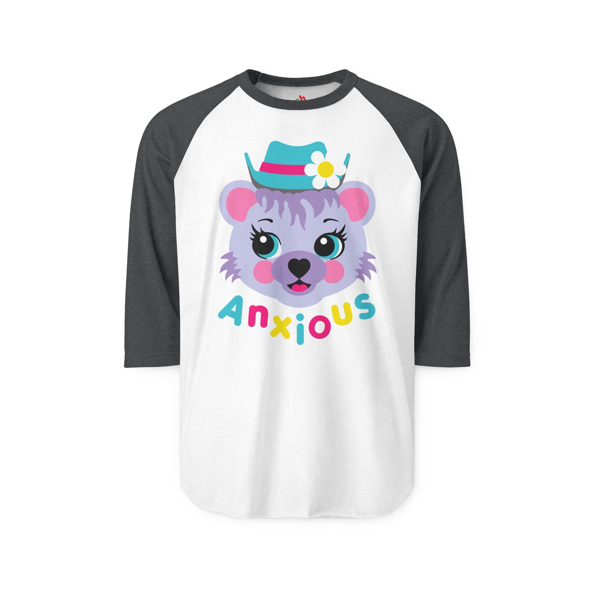 Anxious - cute retro unisex baseball tee, featuring our exclusive Punky Tails character - "Bluebearry!"