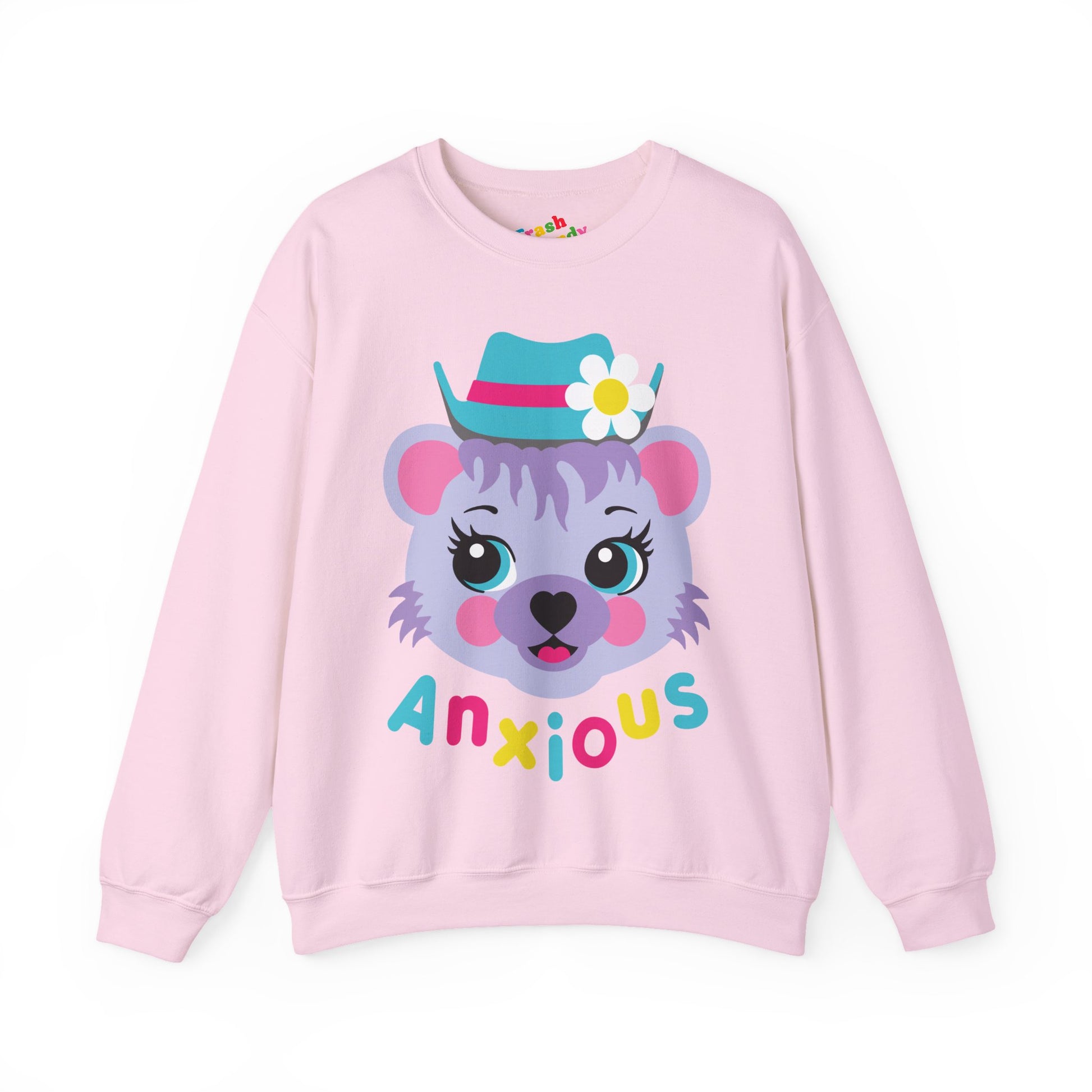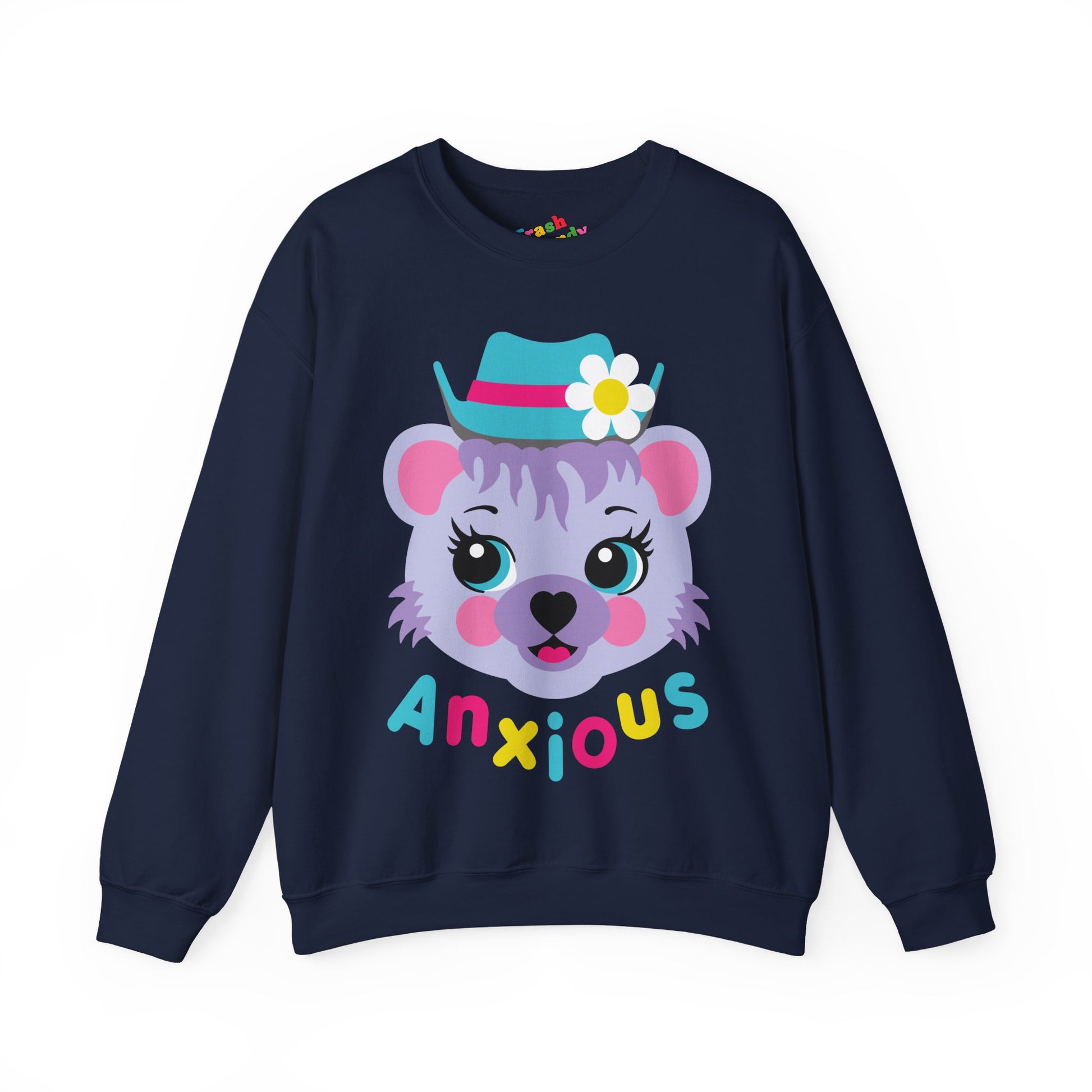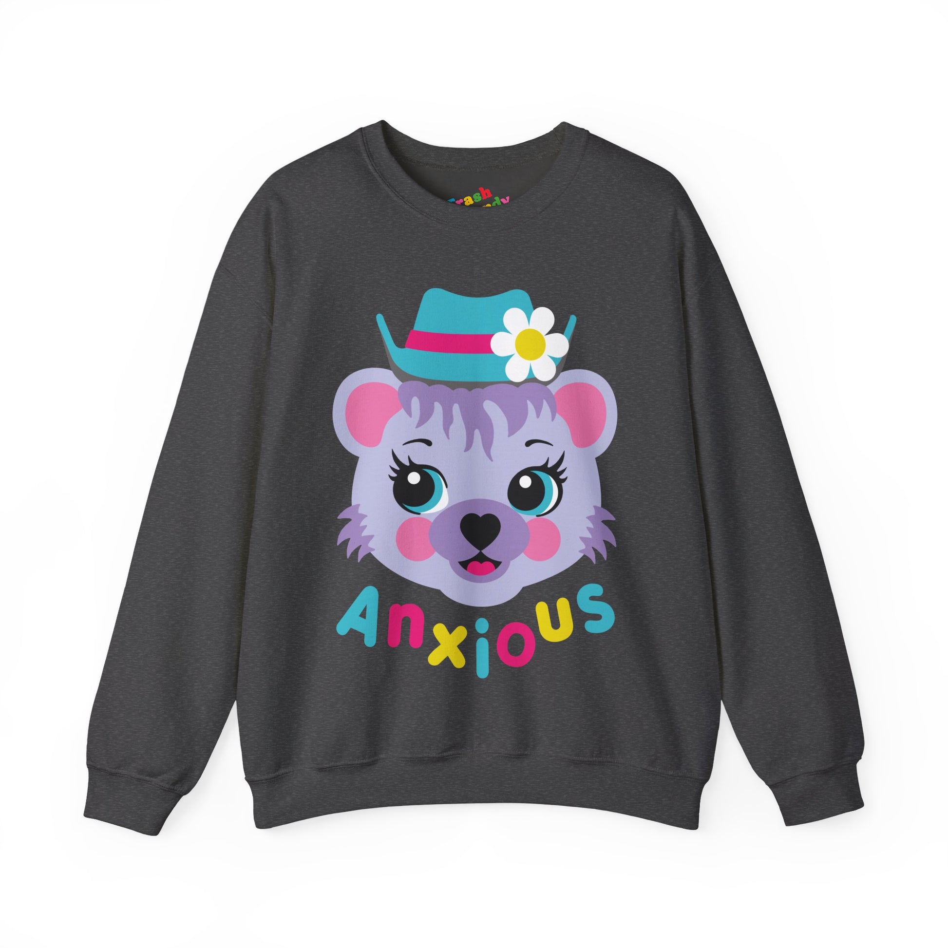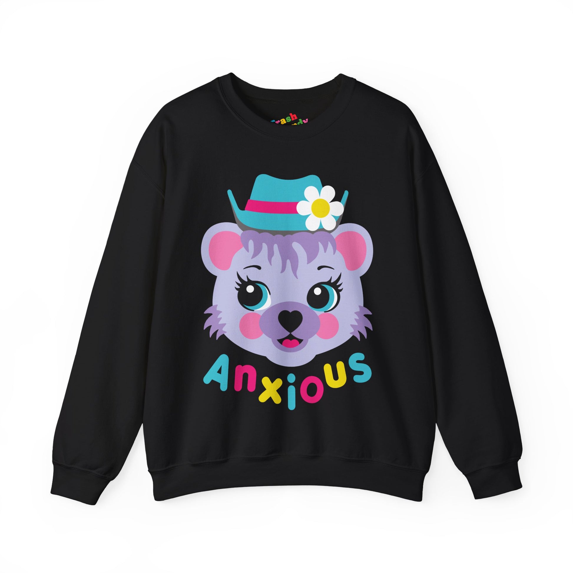 Anxious - cute bear warm & cozy unisex sweatshirt, featuring our exclusive Punky Tails character - "Bluebearry!"