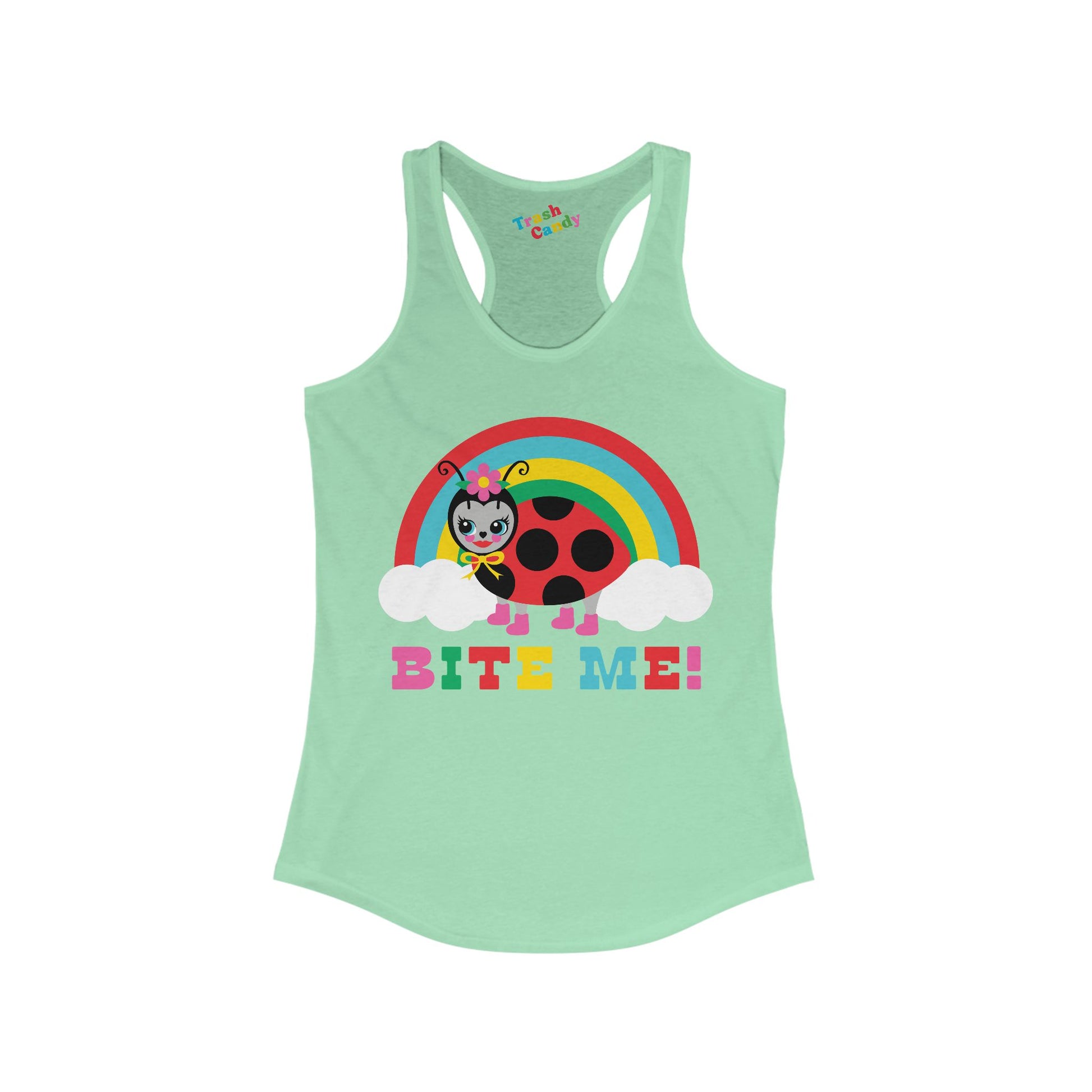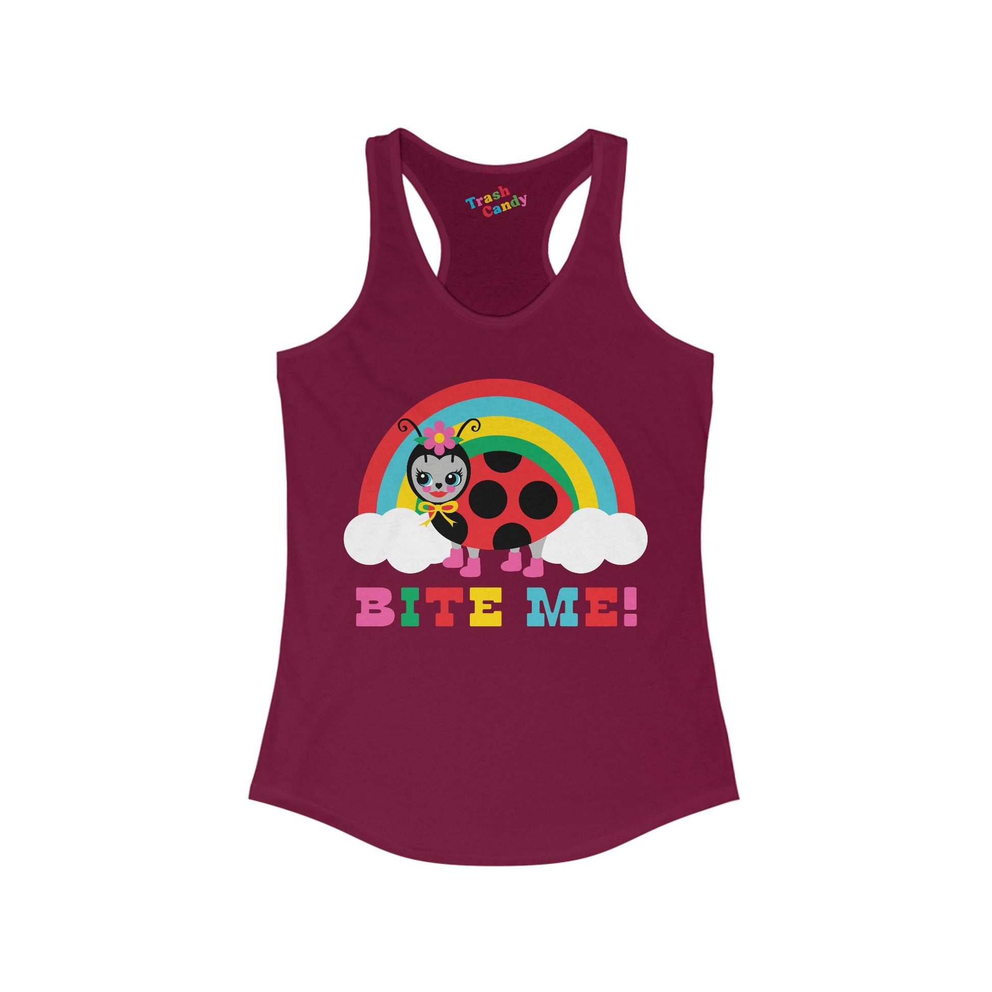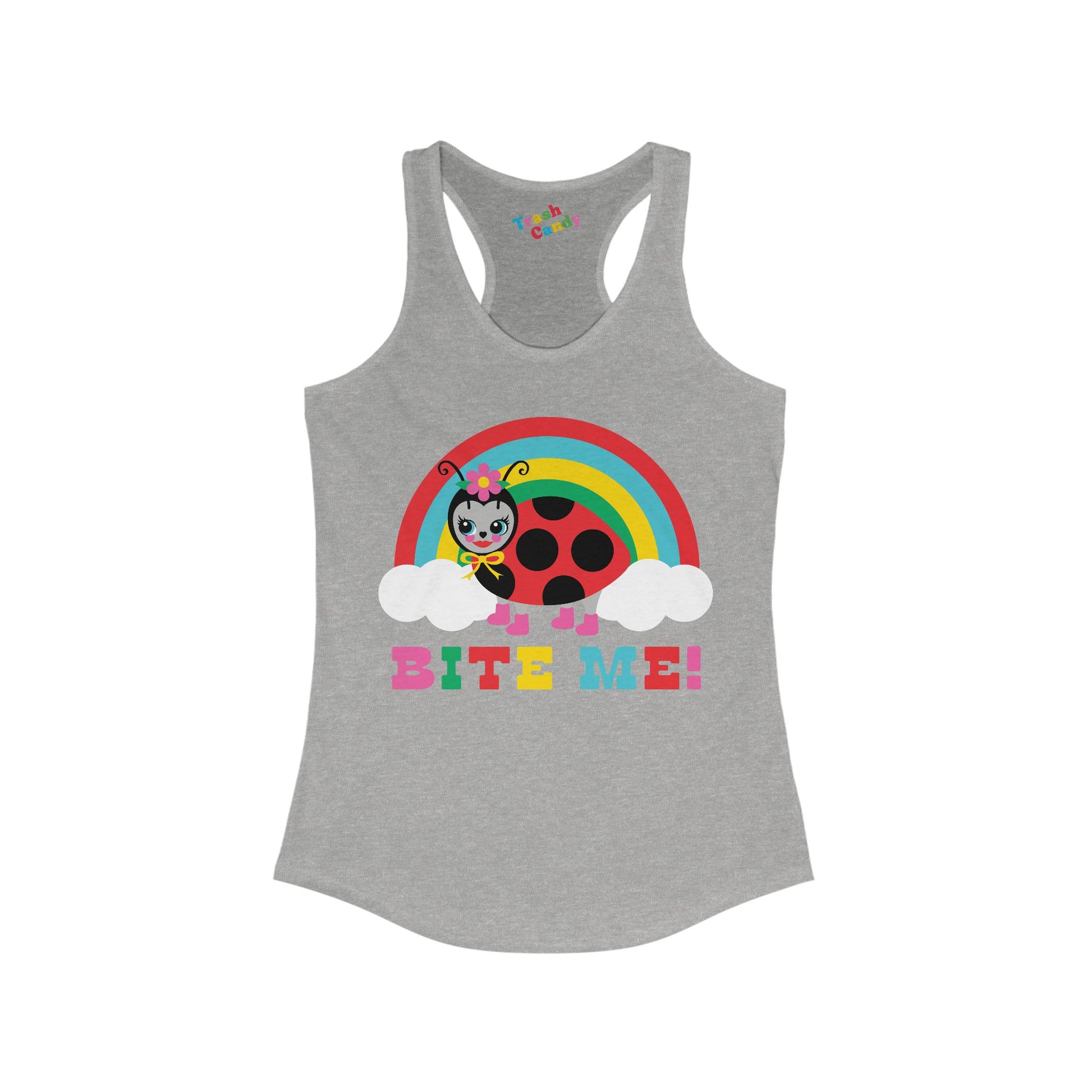 Bite Me! - cute ladybug women's racerback tank top! This tank features our exclusive Punky Tails character - "Rude Judy."