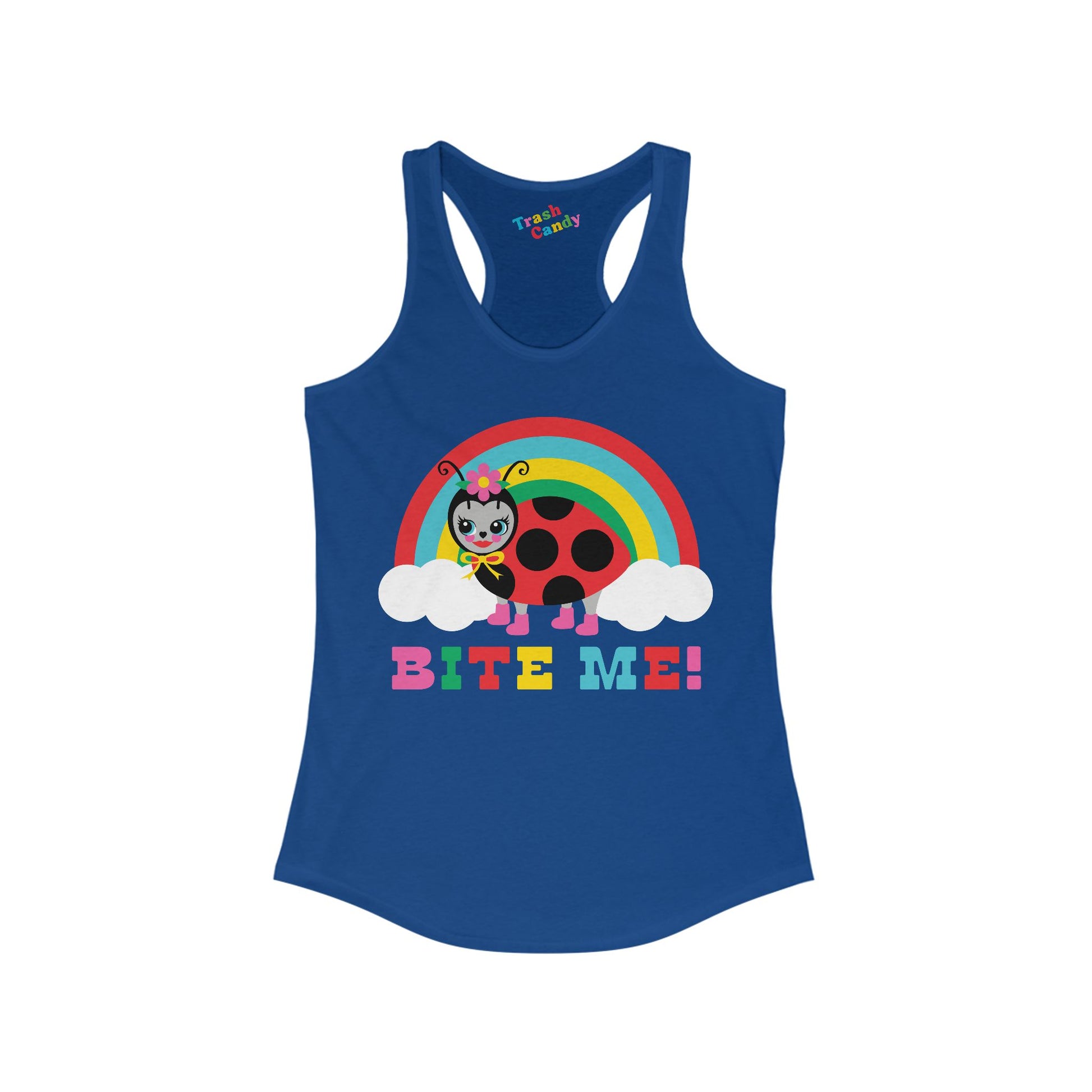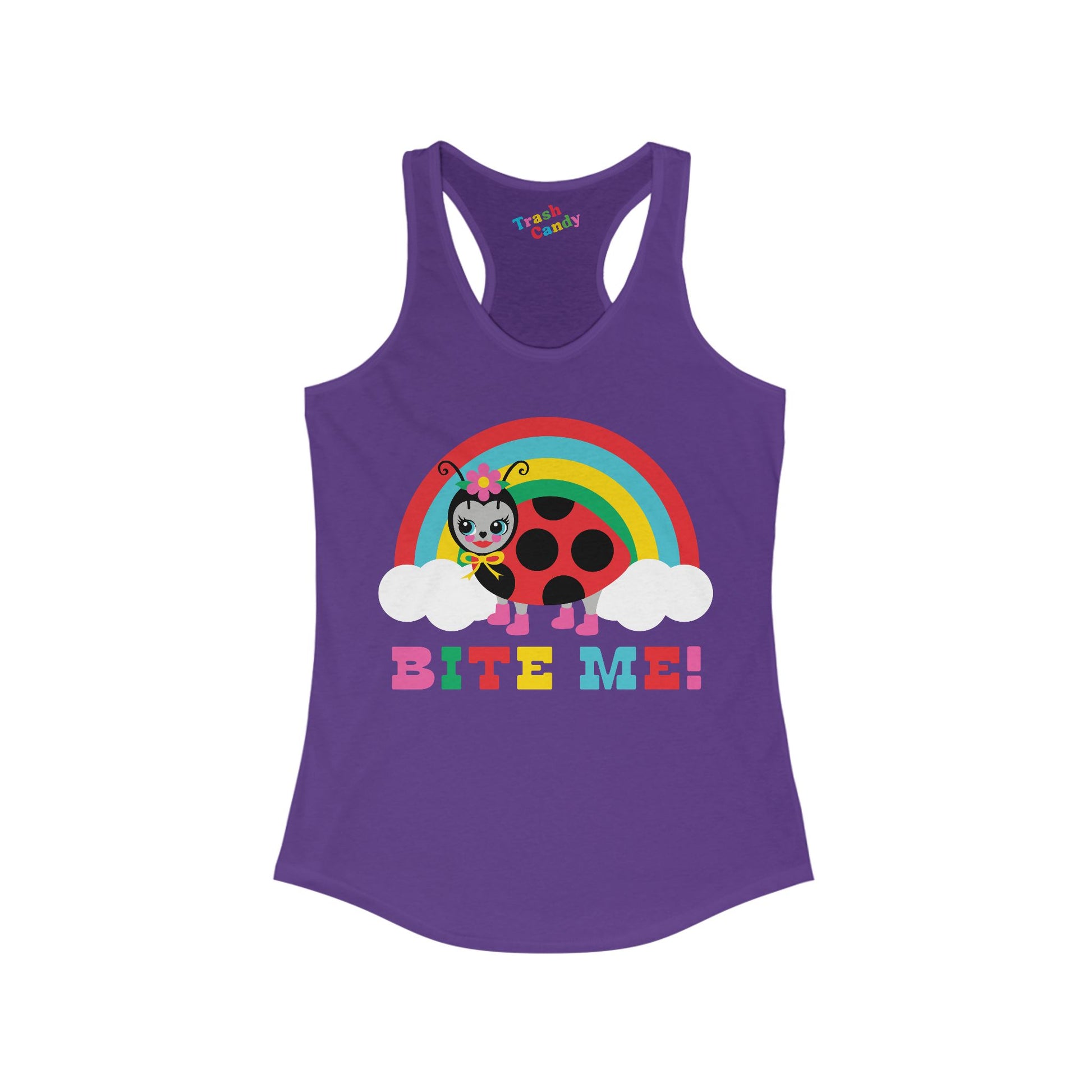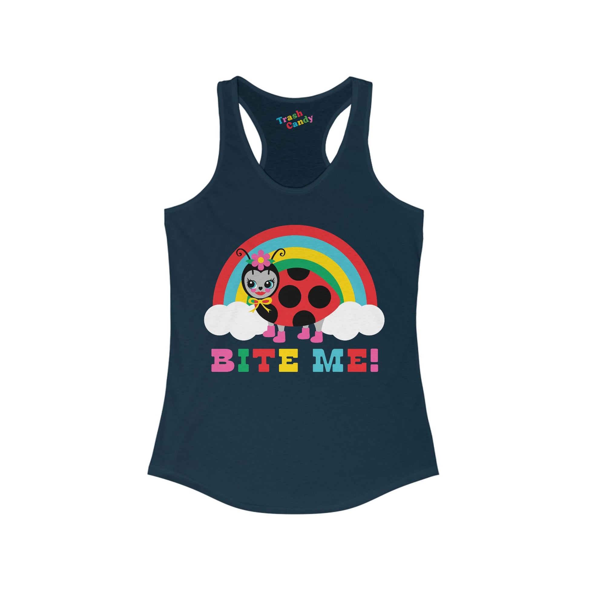 Bite Me! - cute ladybug women's racerback tank top! This tank features our exclusive Punky Tails character - "Rude Judy."