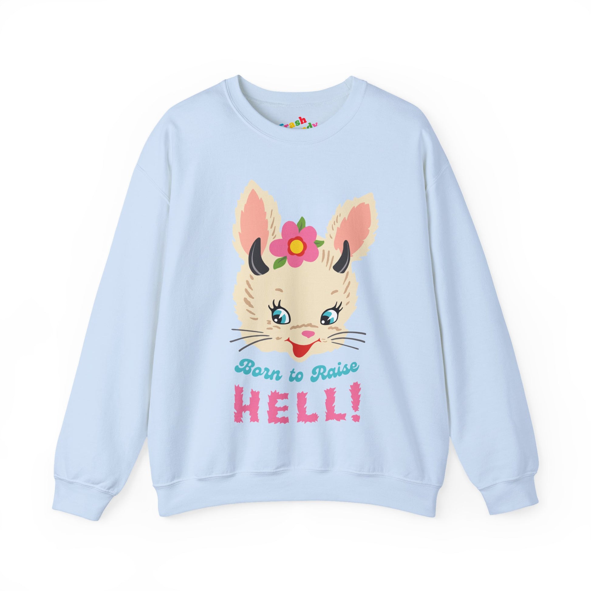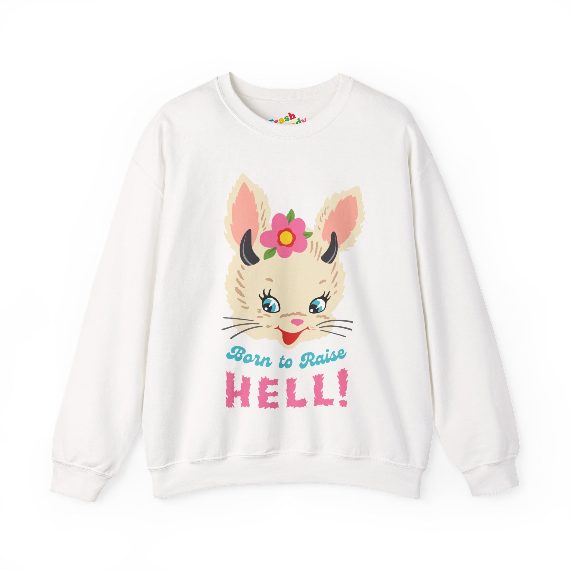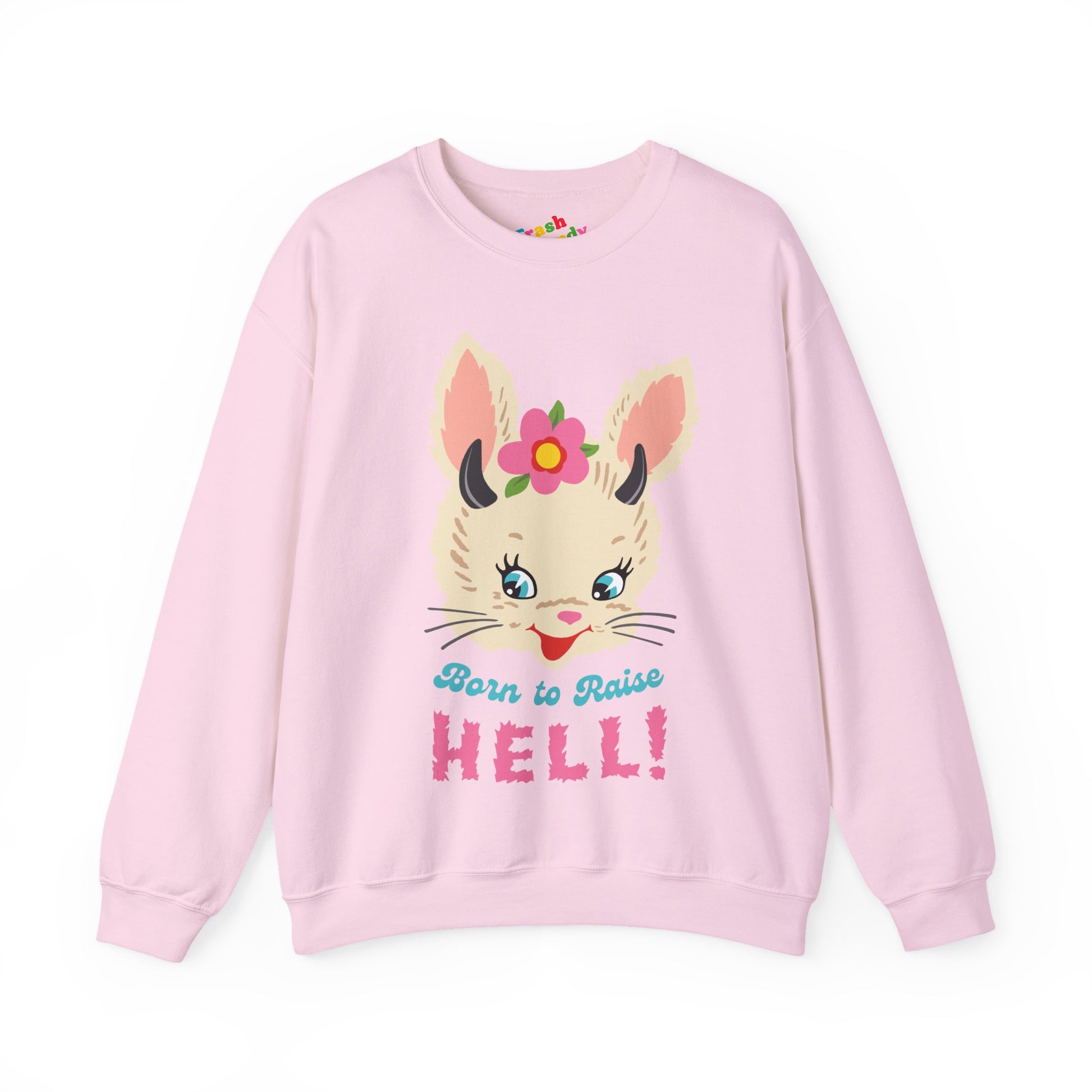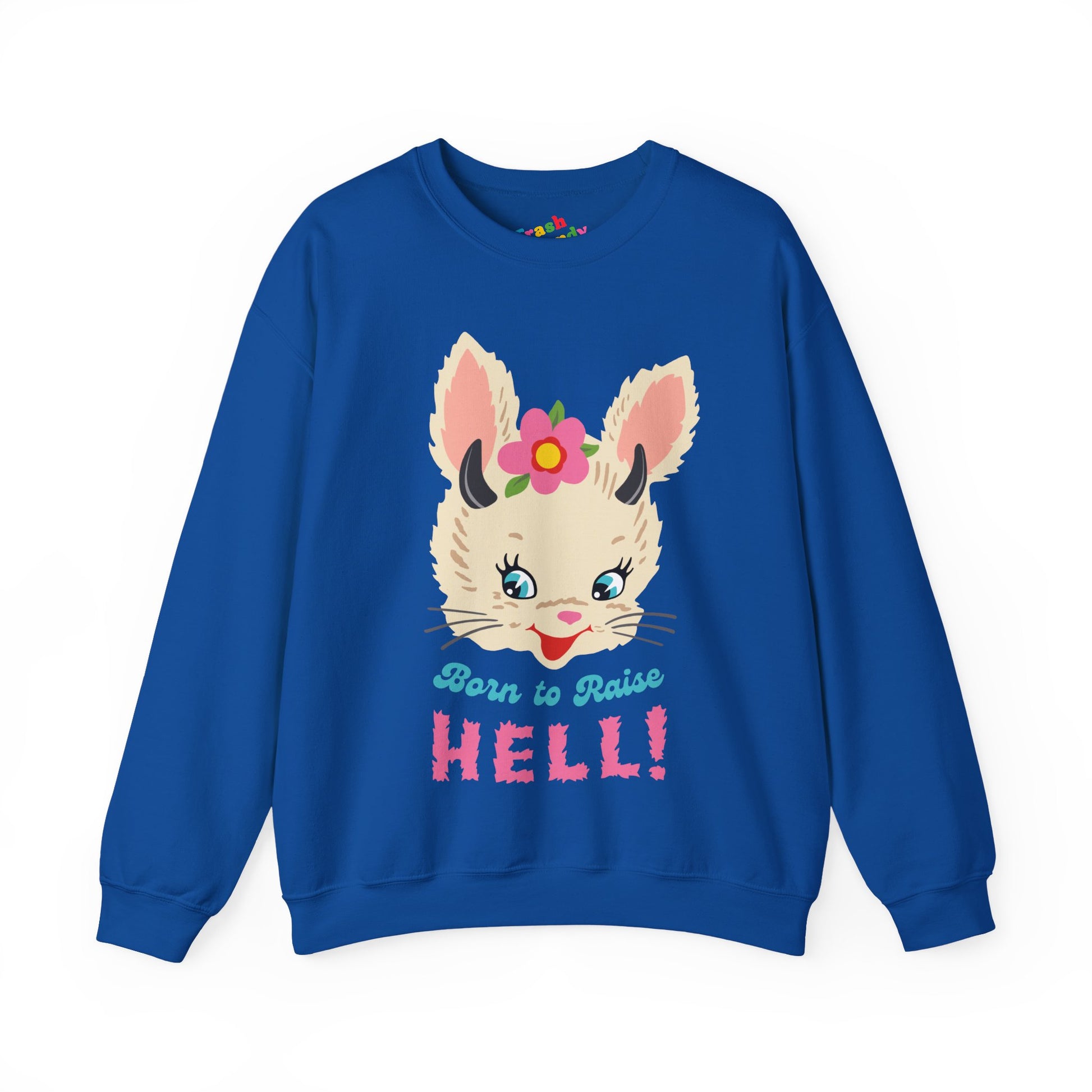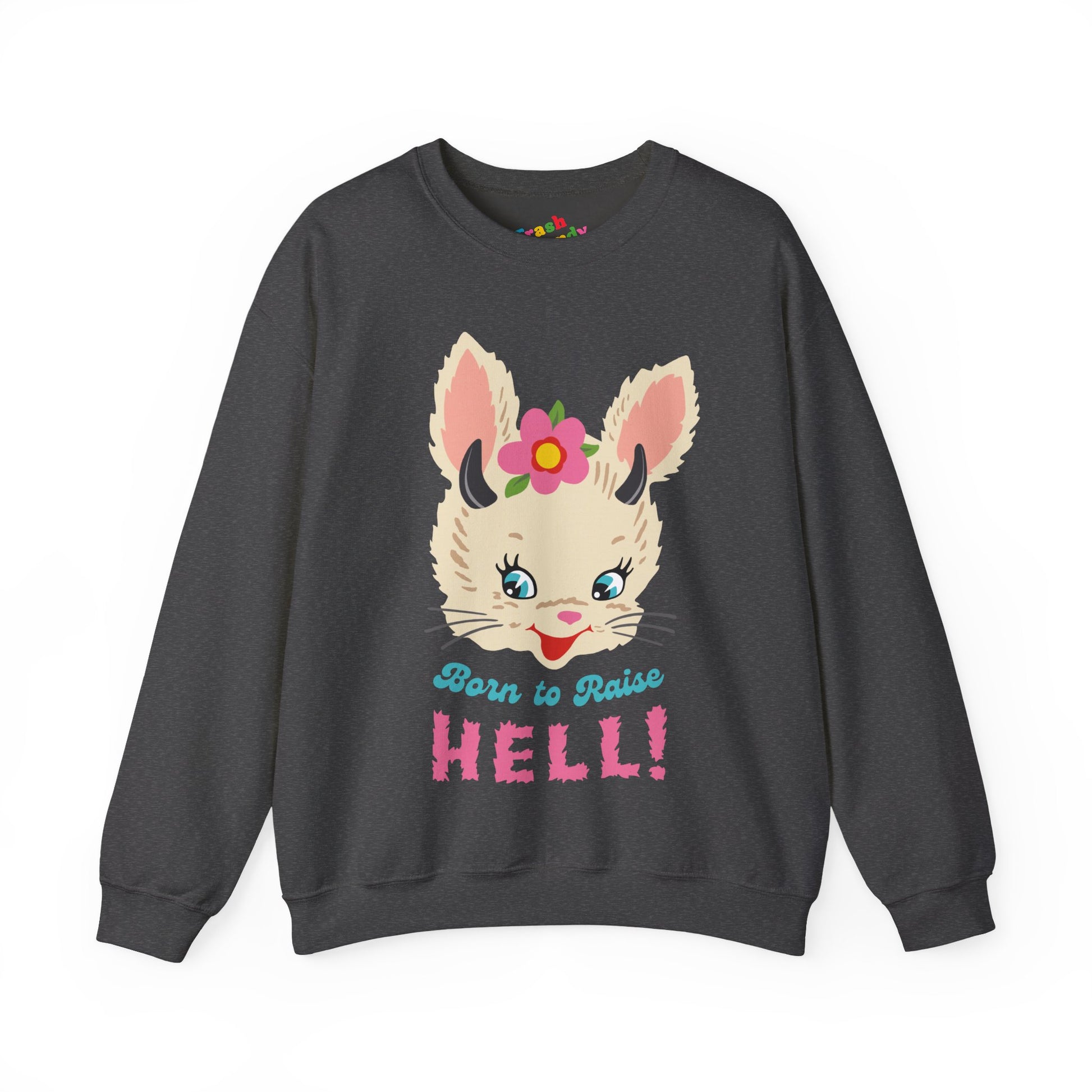 Born to Raise Hell - cute bunny warm & cozy unisex sweatshirt, featuring our exclusive Punky Tails character - "Jellybean!"
