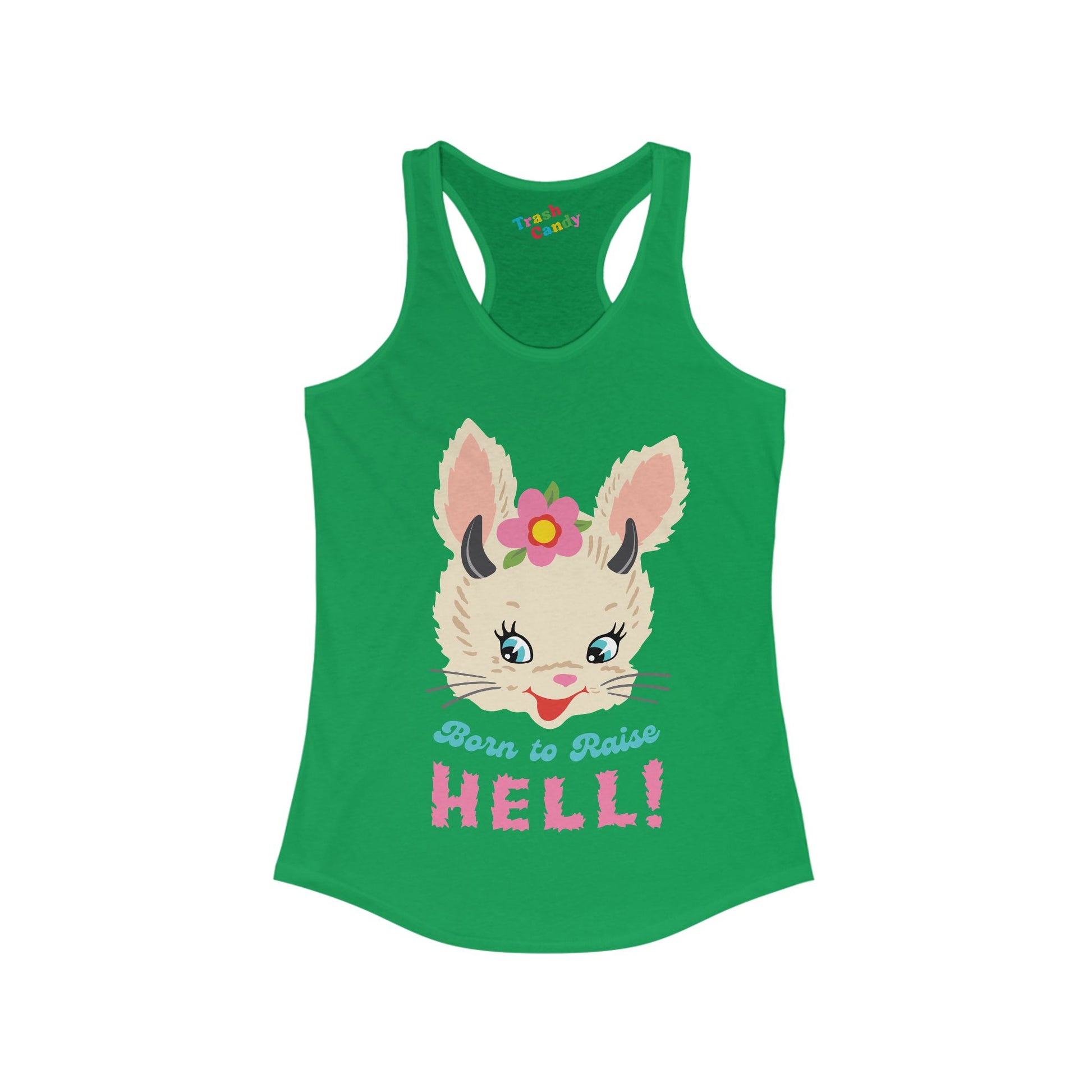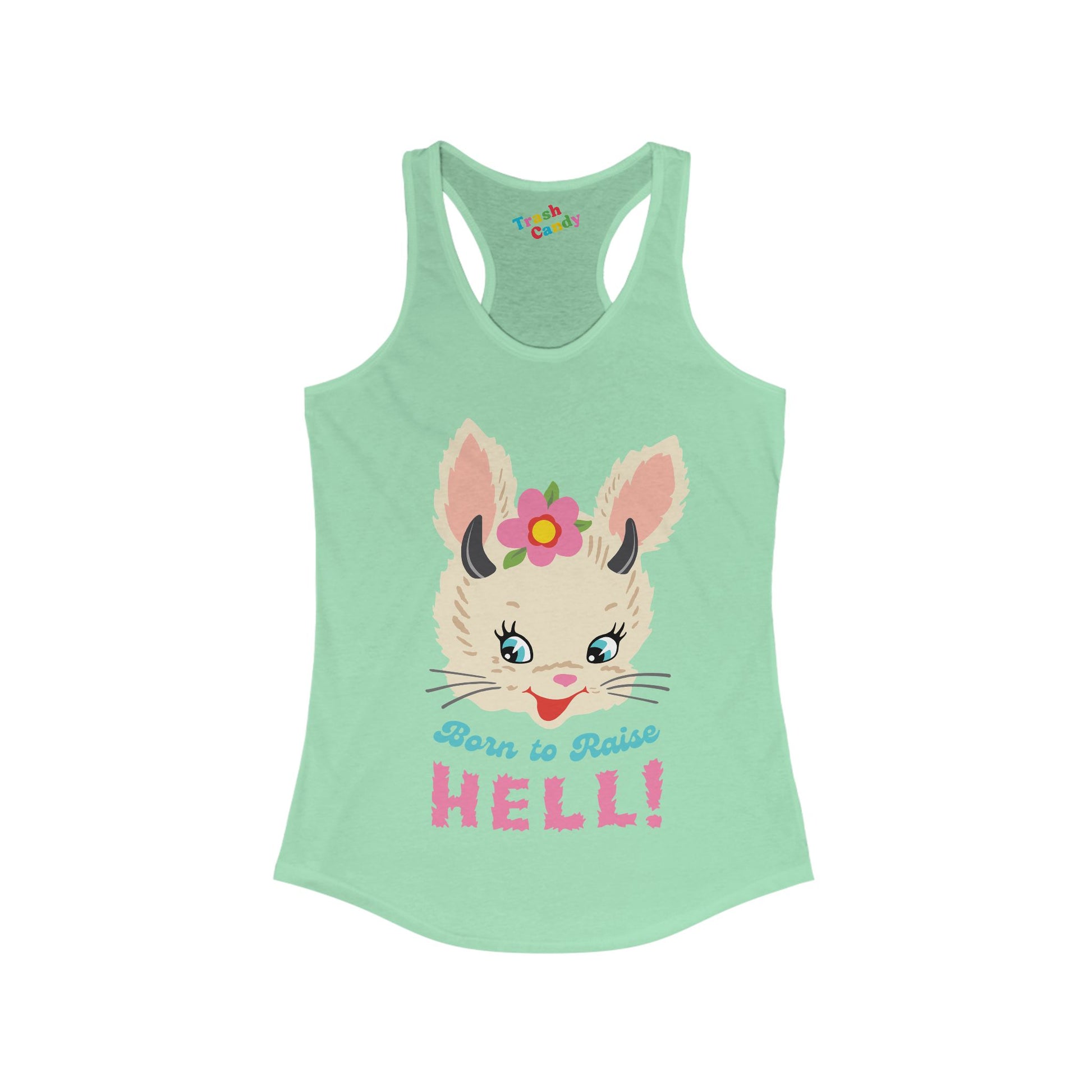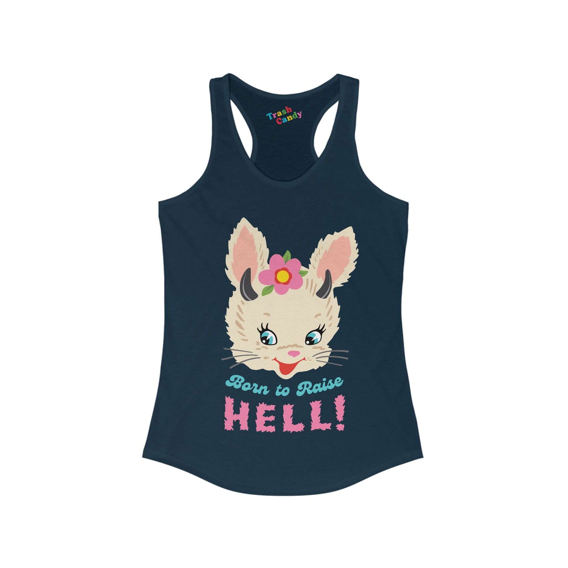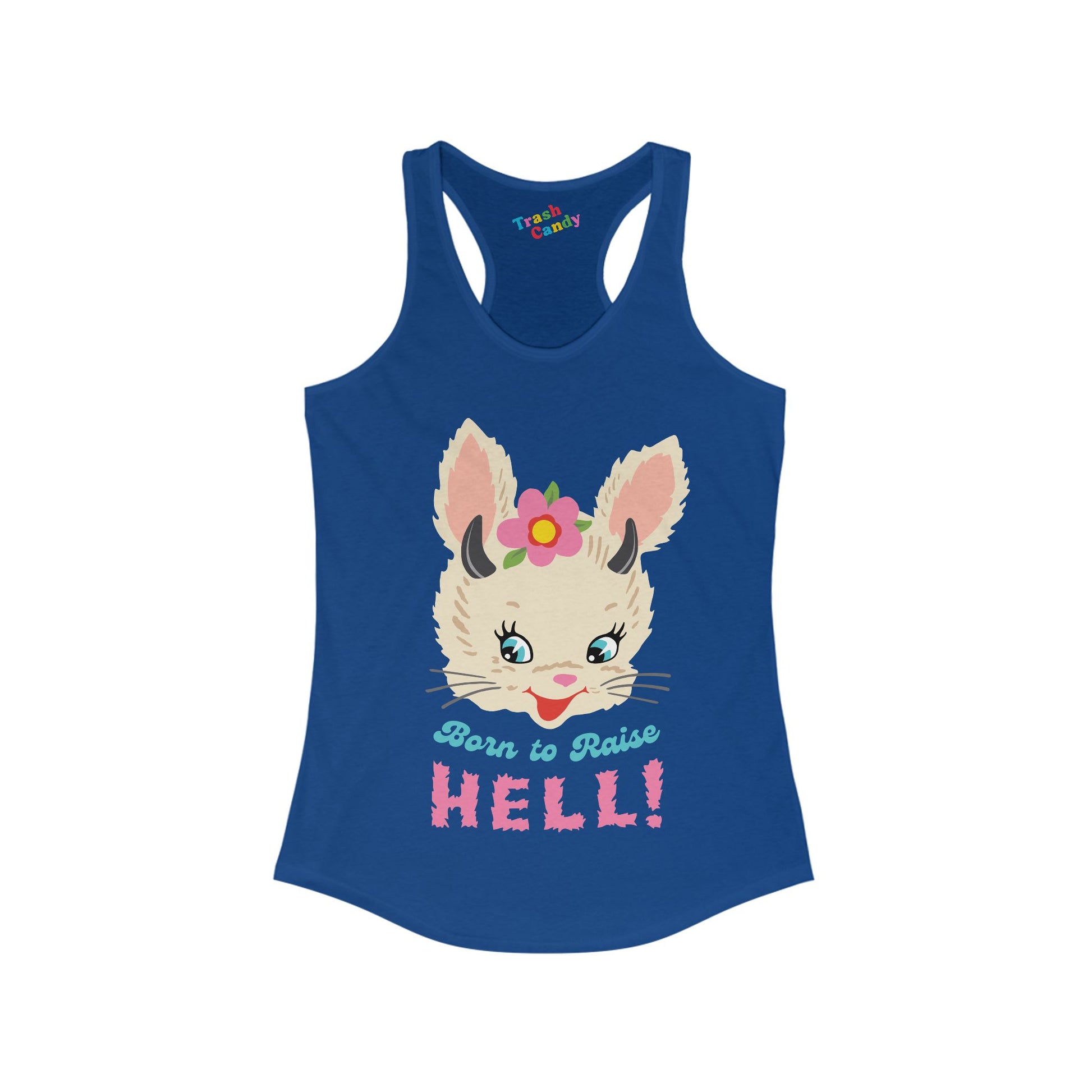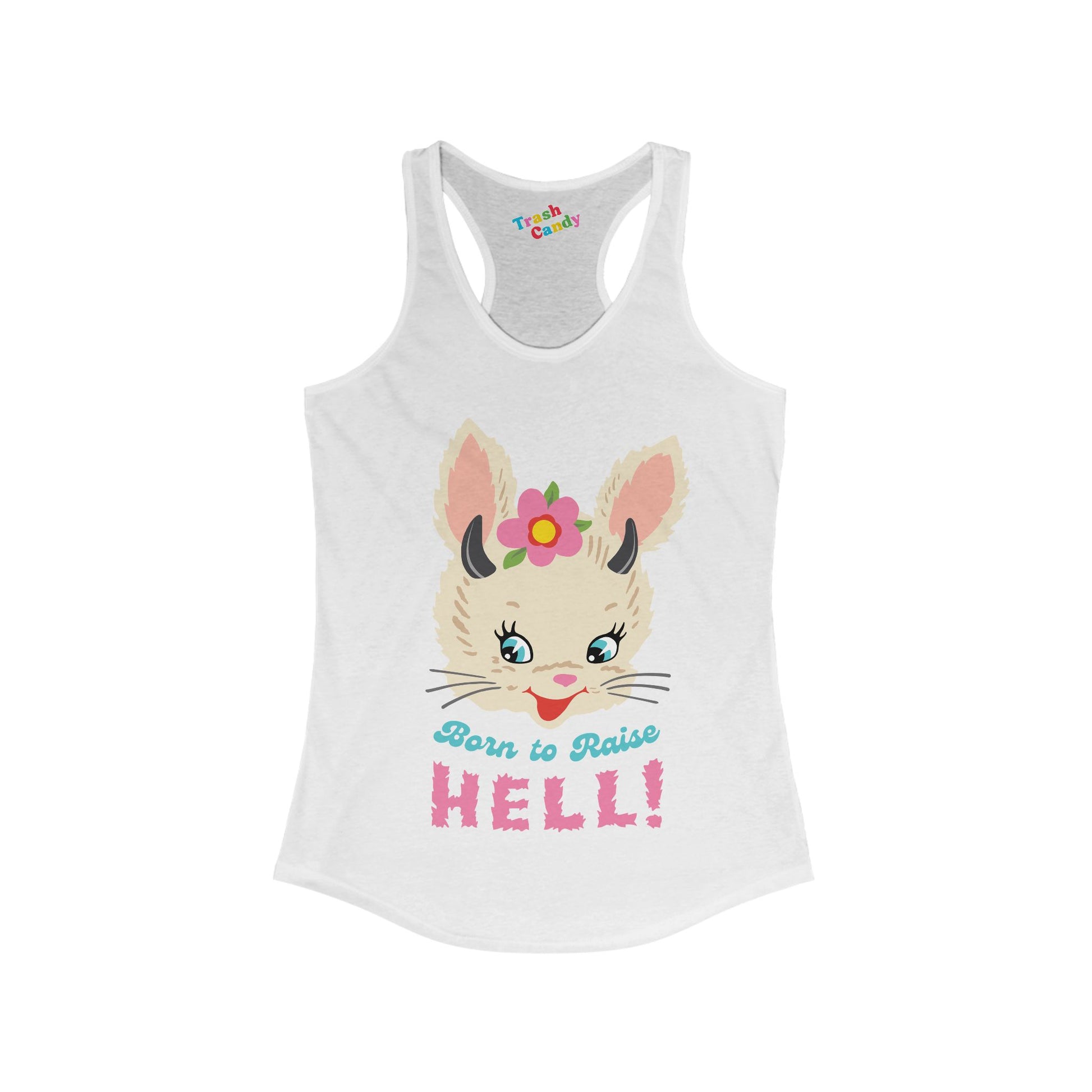 Born to Raise Hell - cute bunny women's racerback tank top! This tank features our exclusive Punky Tails character - "Jellybean."