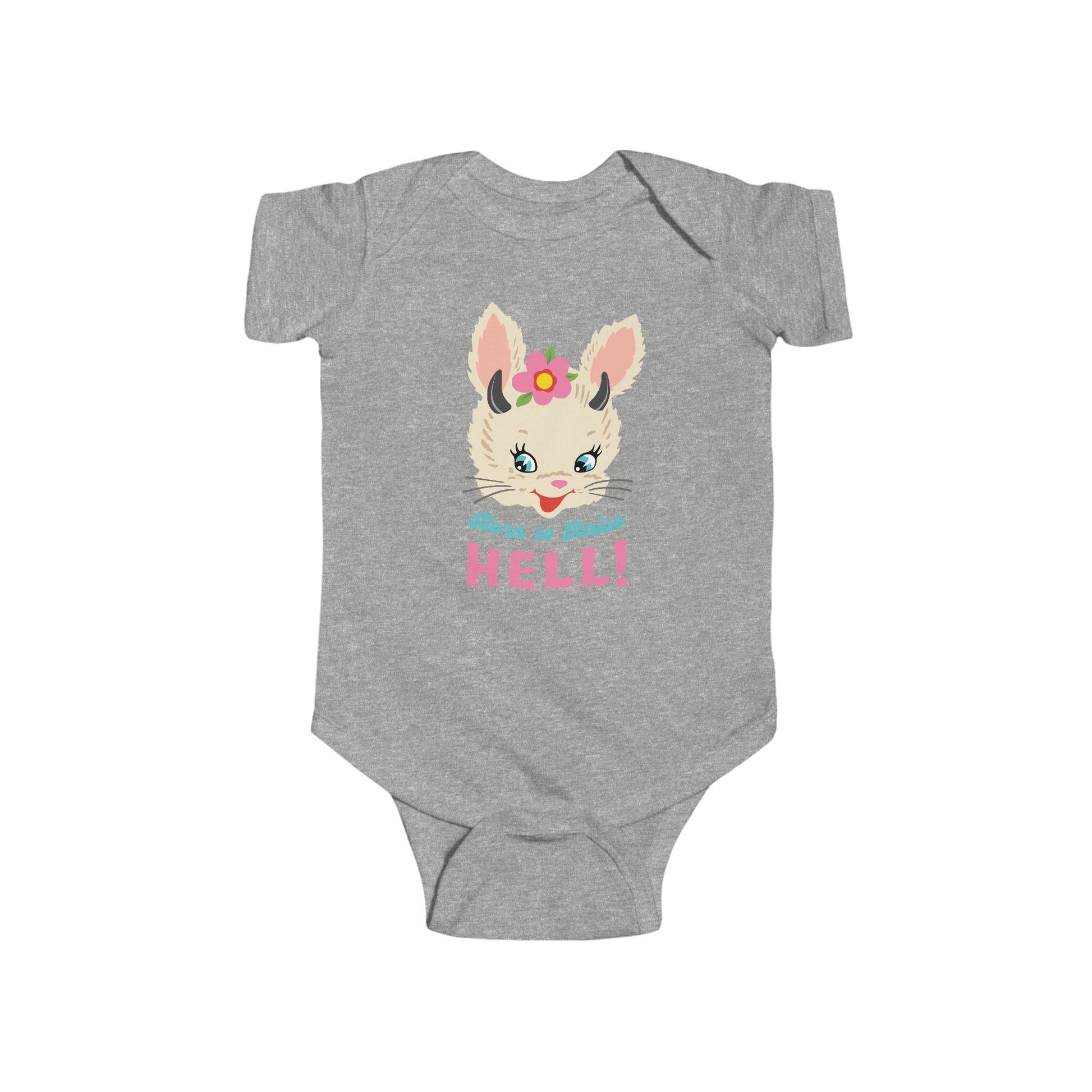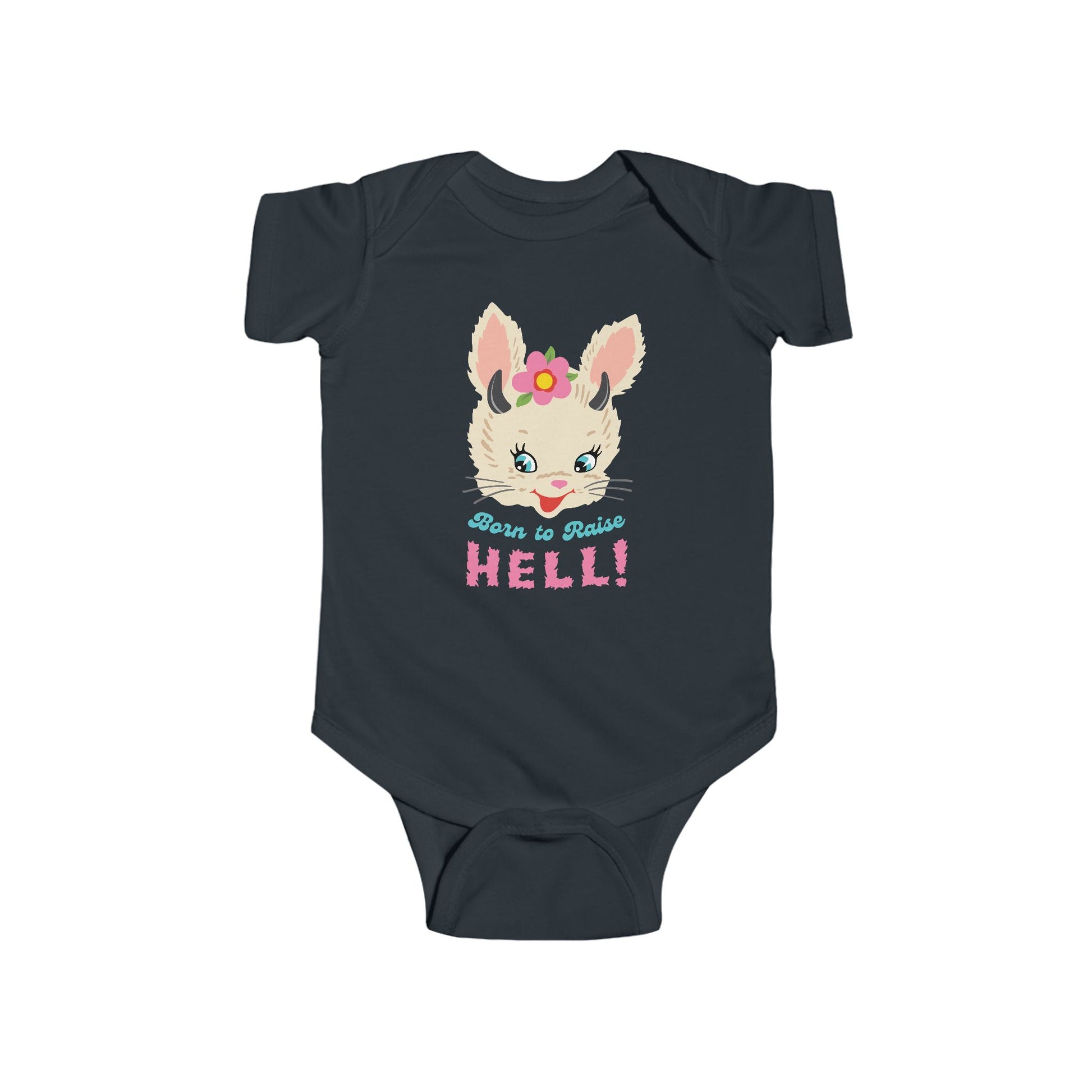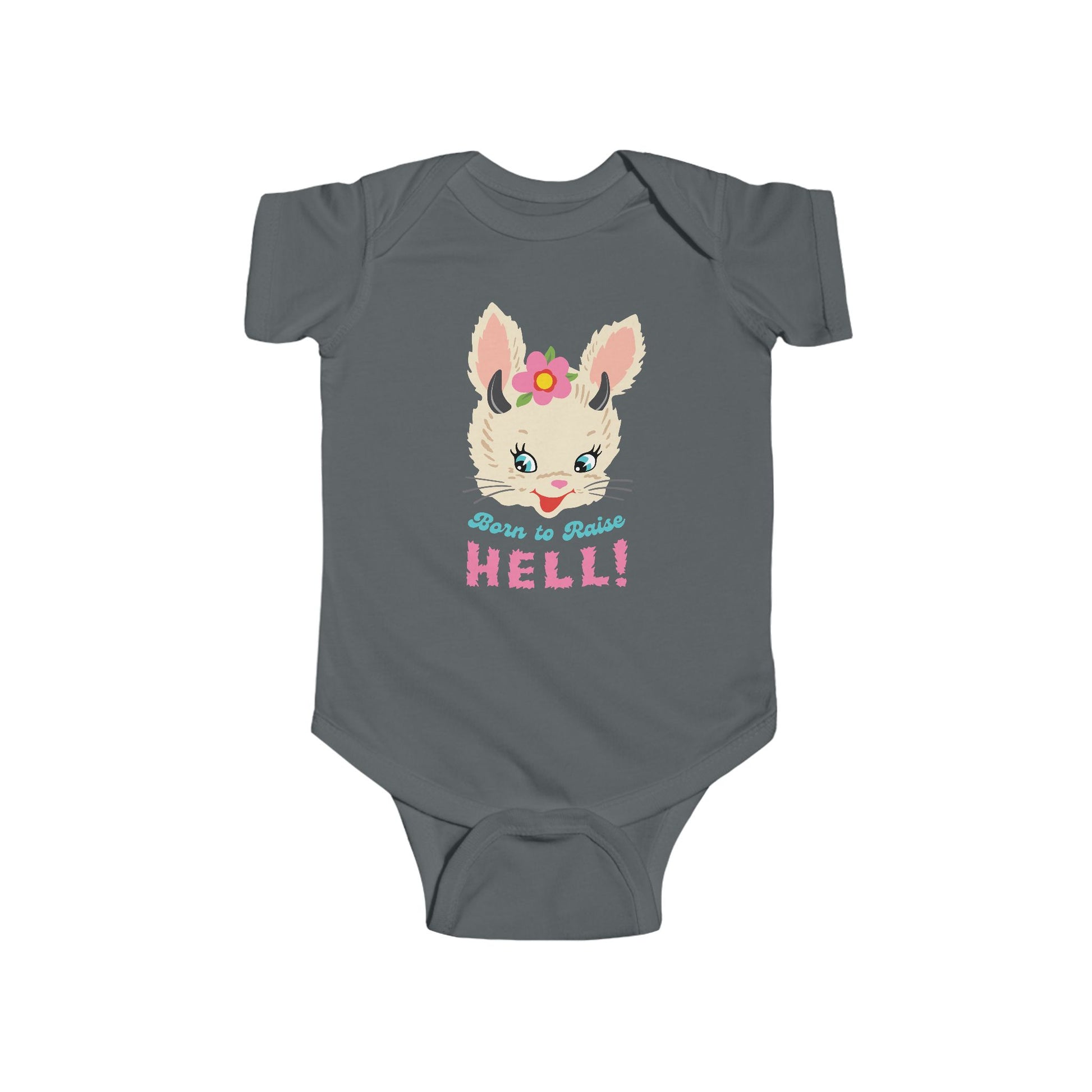 Born to Raise Hell - cute bunny baby bodysuit! This bodysuit features our exclusive Punky Tails character, "Jellybean."