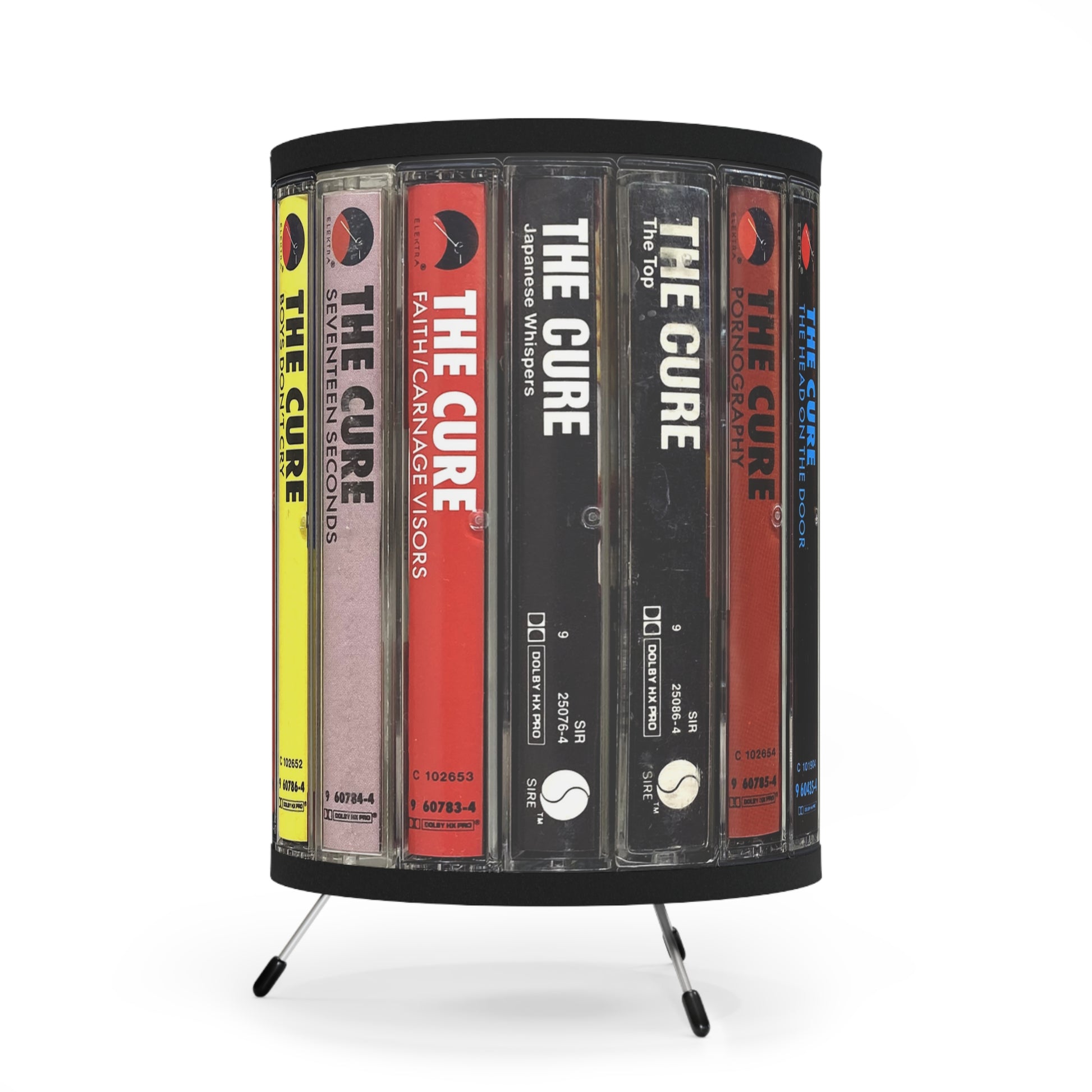 This super cool The Cure cassette tapes lamp is a fun addition to your retro decor! The design of this lamp was made with real vintage tapes - no AI nonsense here! This lamp is compact in size at 11 inches tall by 7 inches wide, offering nice, warm mood lighting and big style to your room!