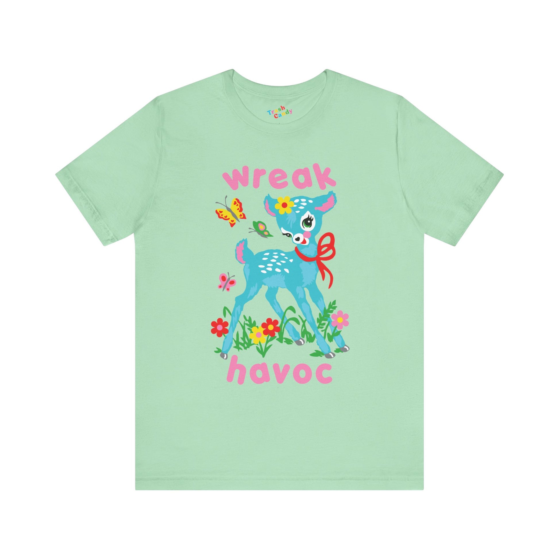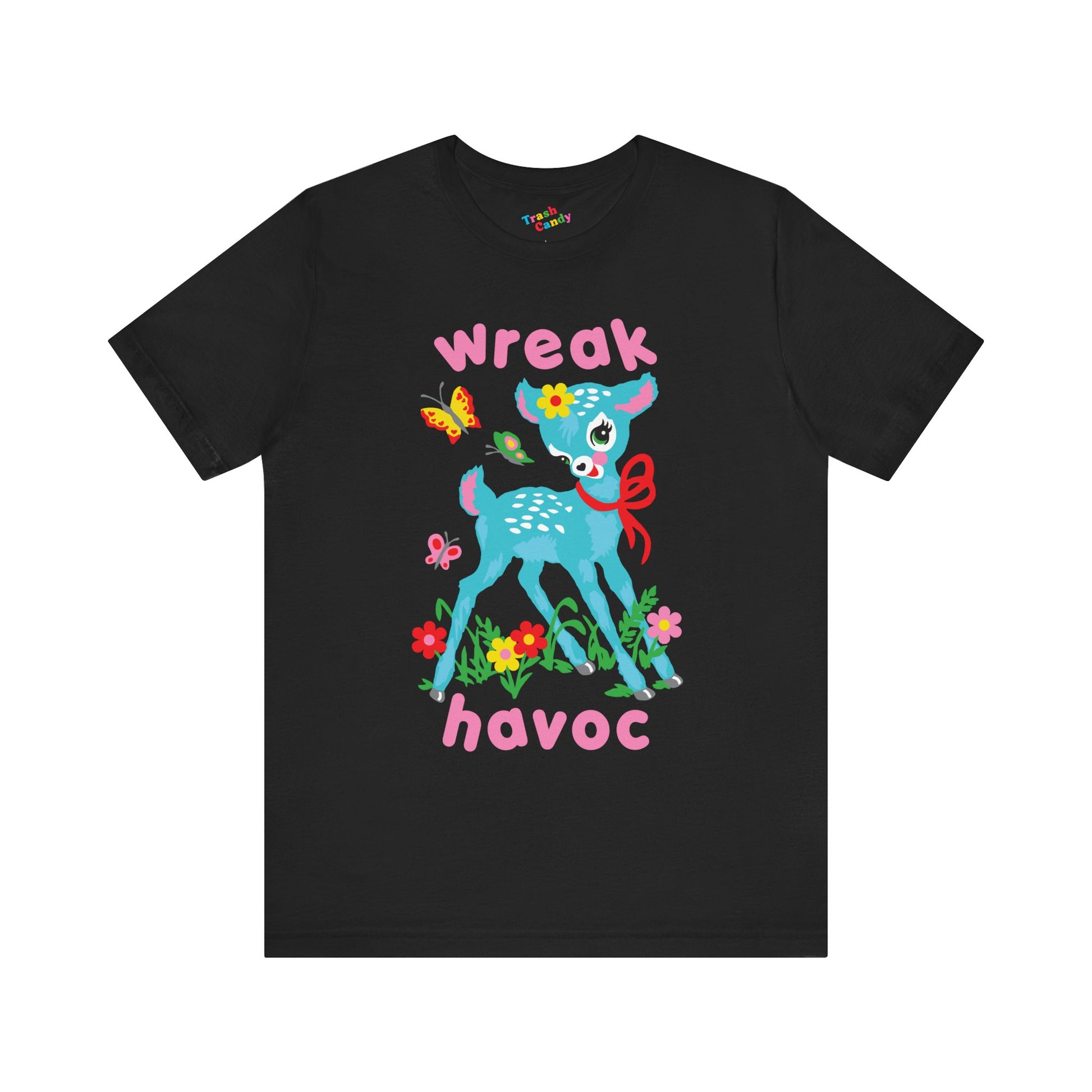 Wreak Havoc - soft & comfy unisex tee, featuring our exclusive Punky Tails character - "Daisy Knuckles!"