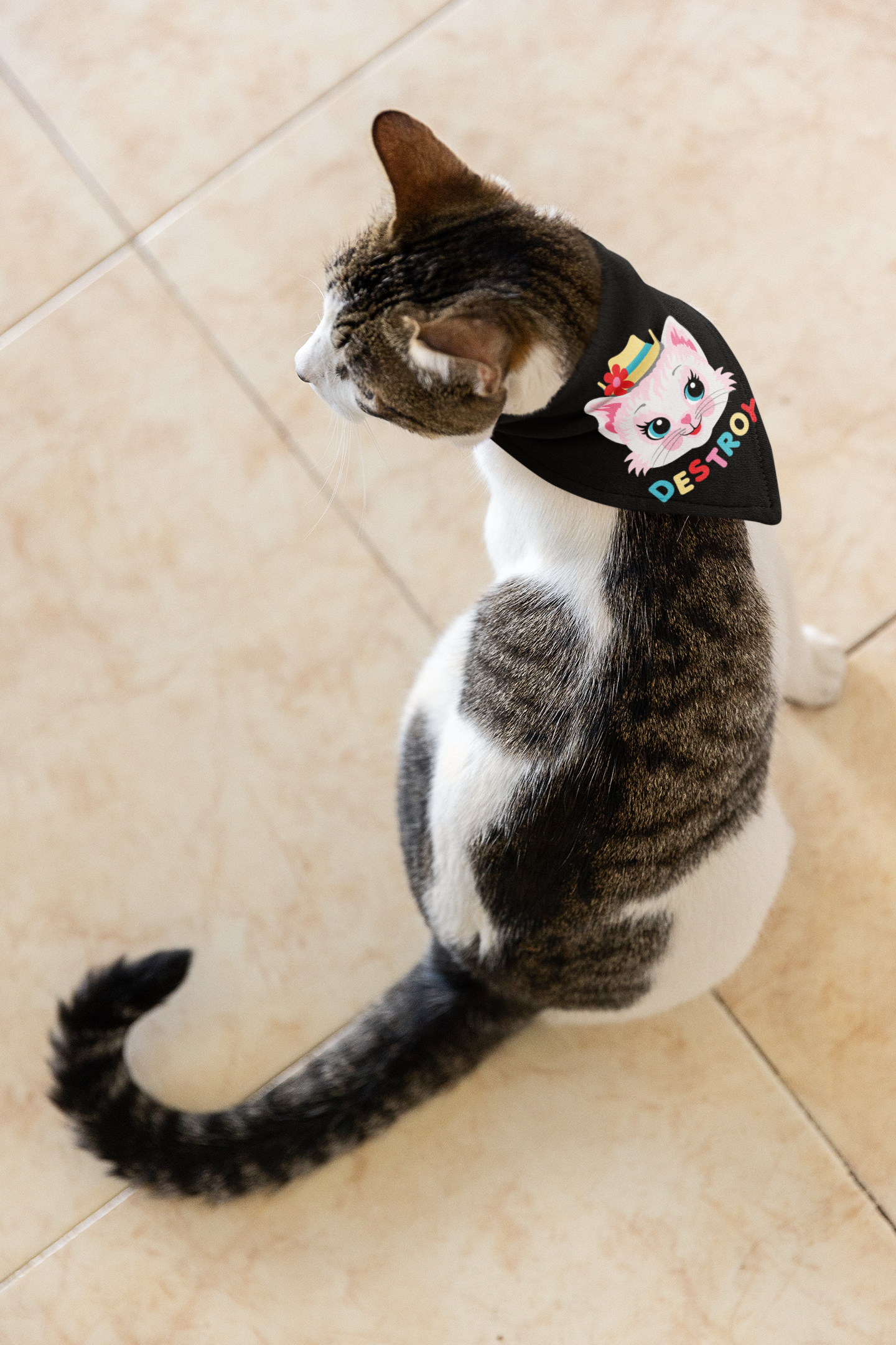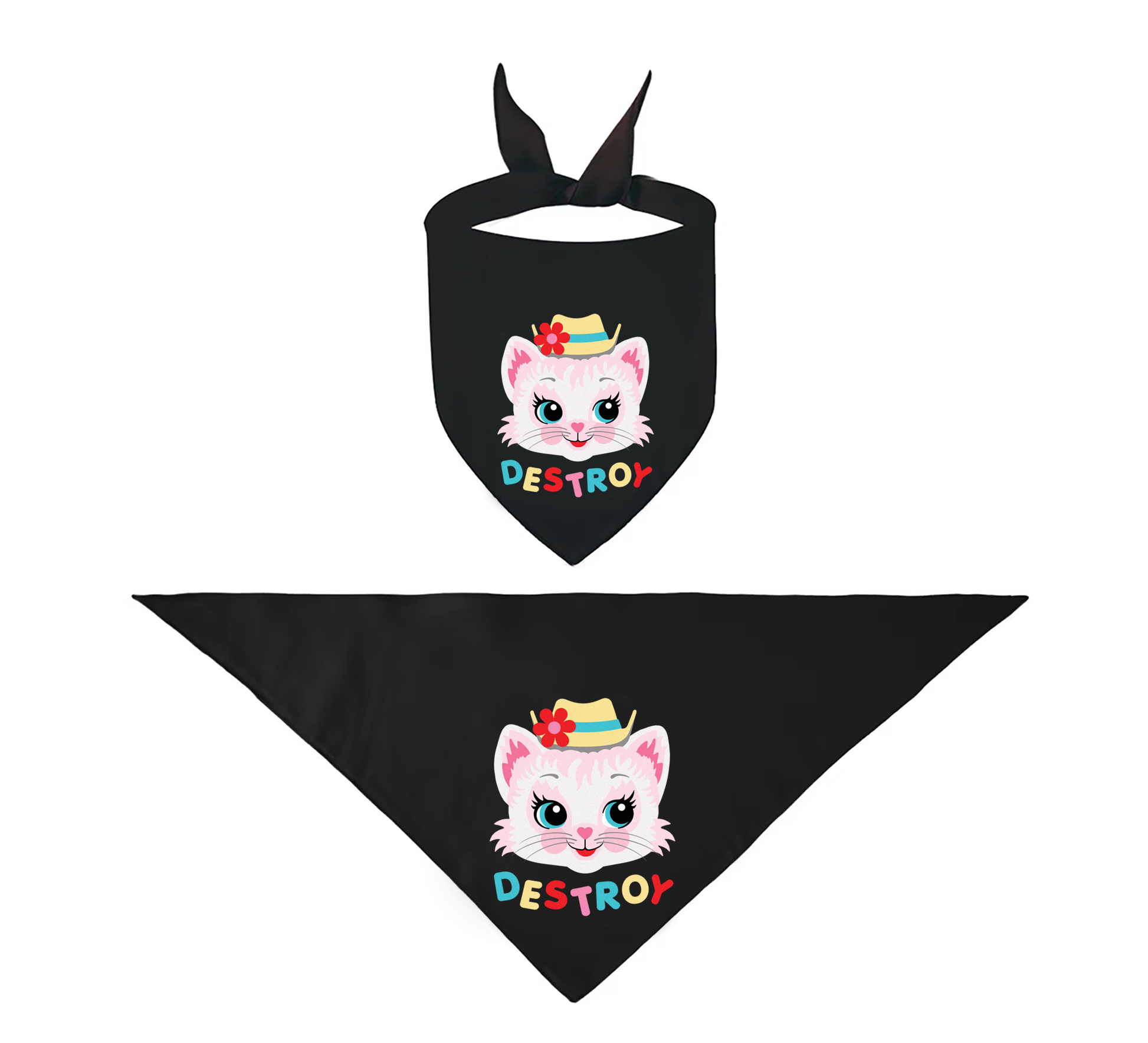 Destroy - cute retro pet bandana! This 100% cotton bandana features our exclusive Punky Tails character "Mad Marshmallow," and is available in three sizes.
