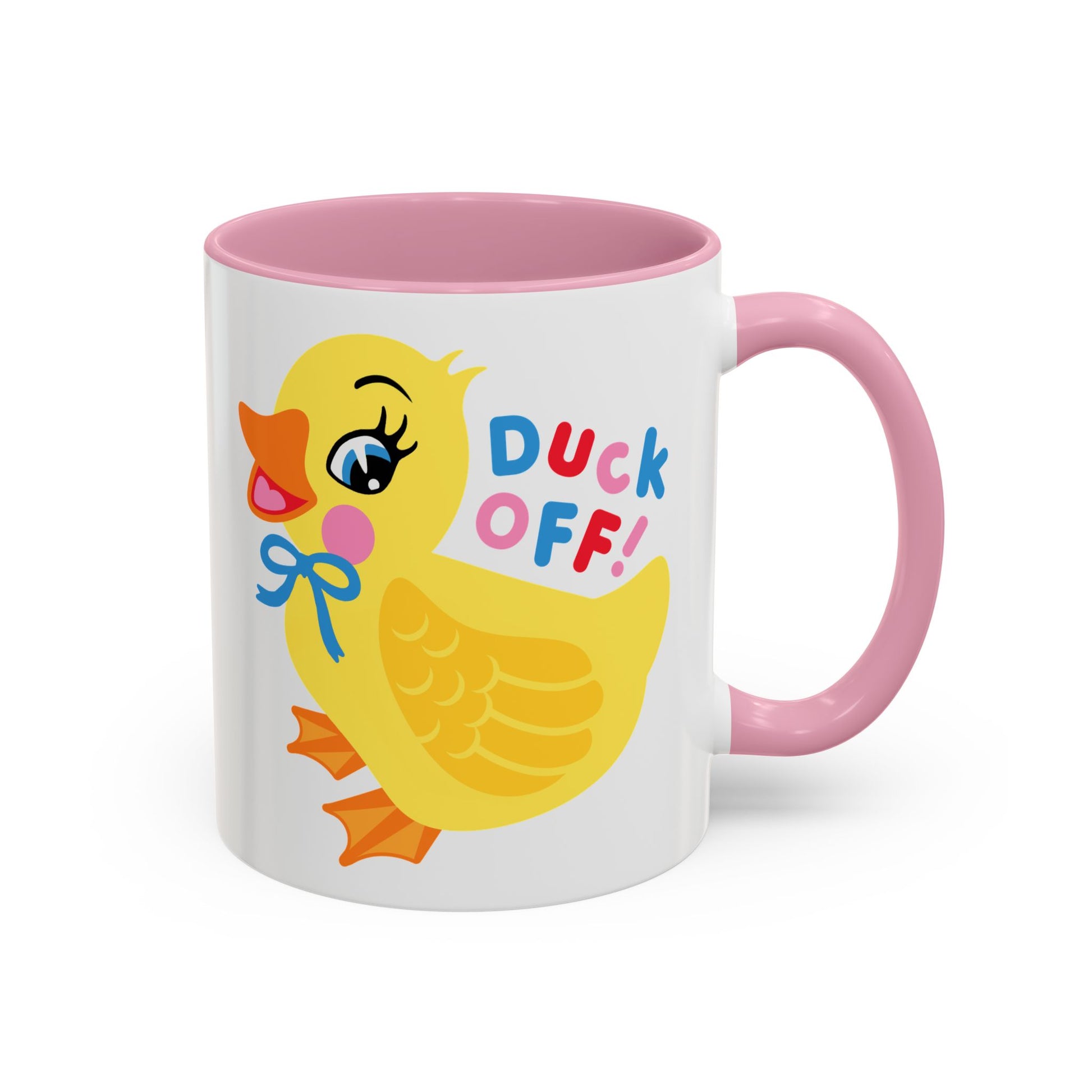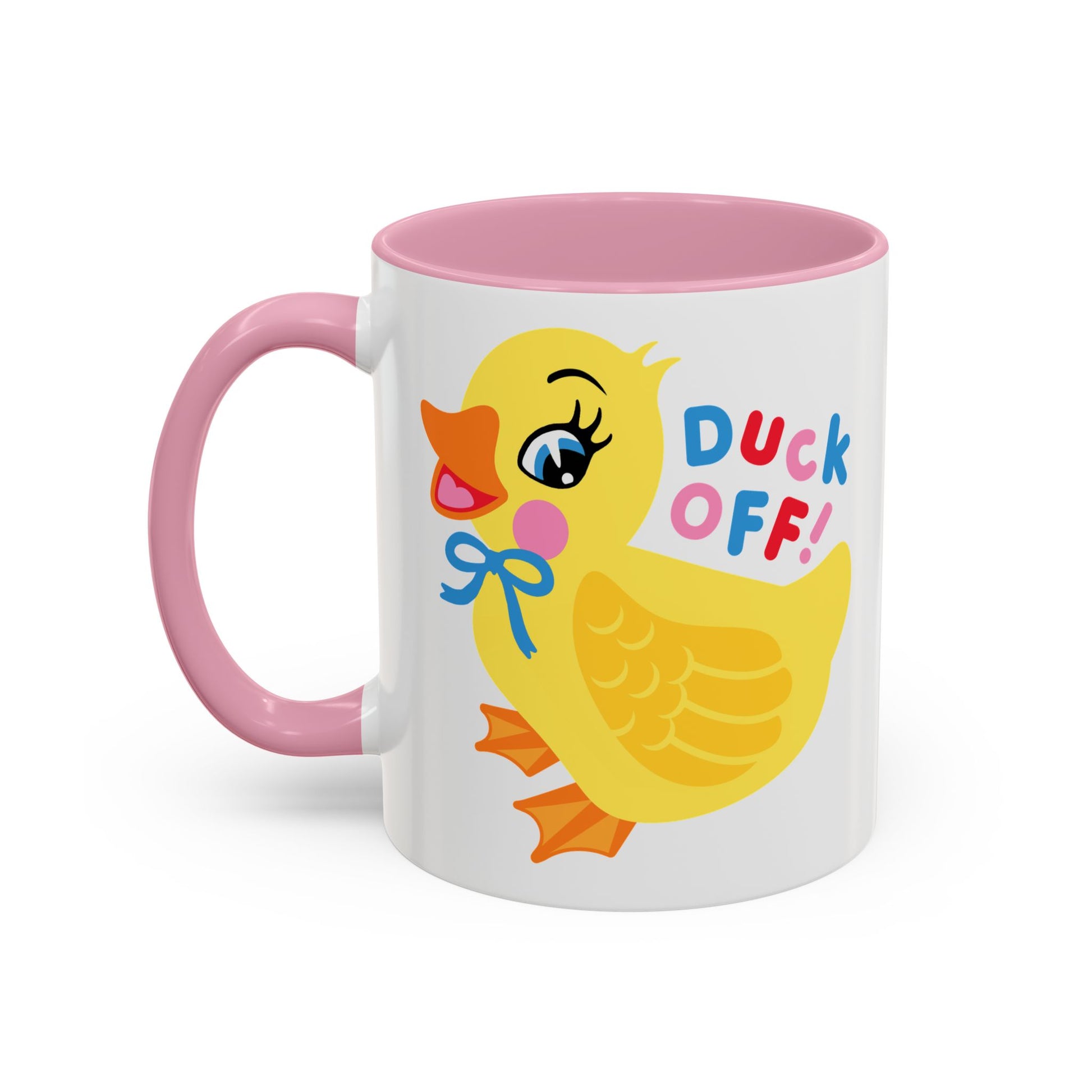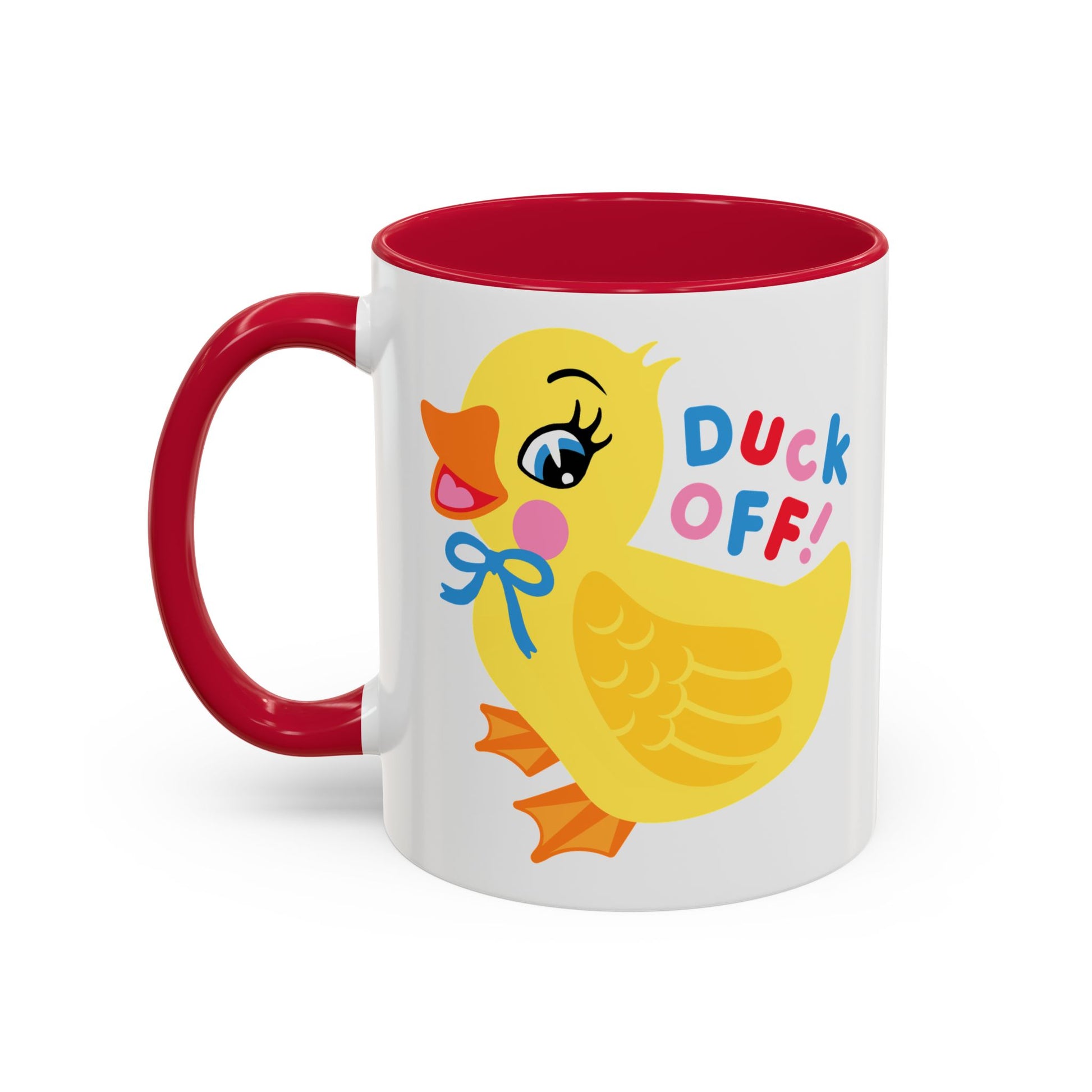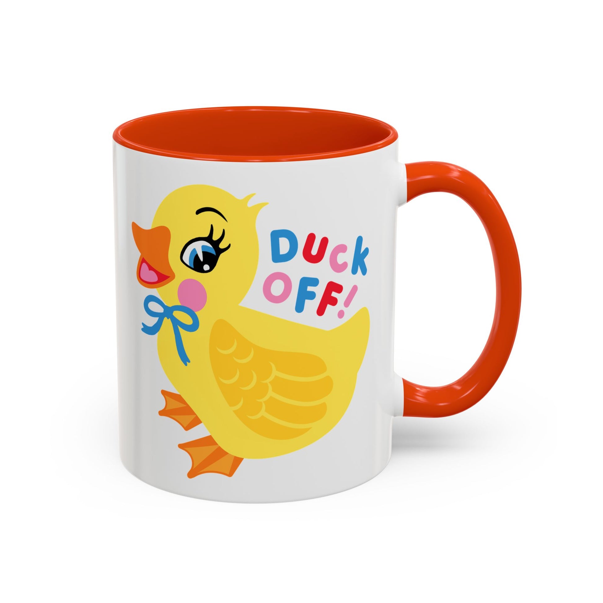 Duck Off! - cute retro 11oz mug, featuring our exclusive Punky Tails character - "Sammy Switchblade!" Choose from a variety of colors.