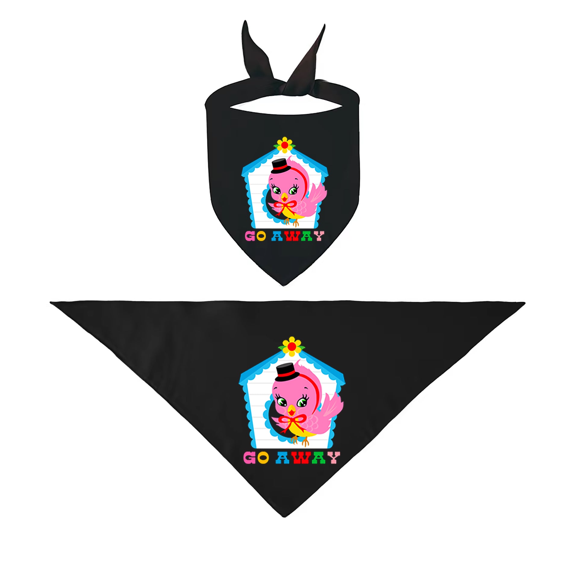 Go Away - cute birdy pet bandana! This 100% cotton bandana features our exclusive Punky Tails character "Raspberry" and is available in three sizes.