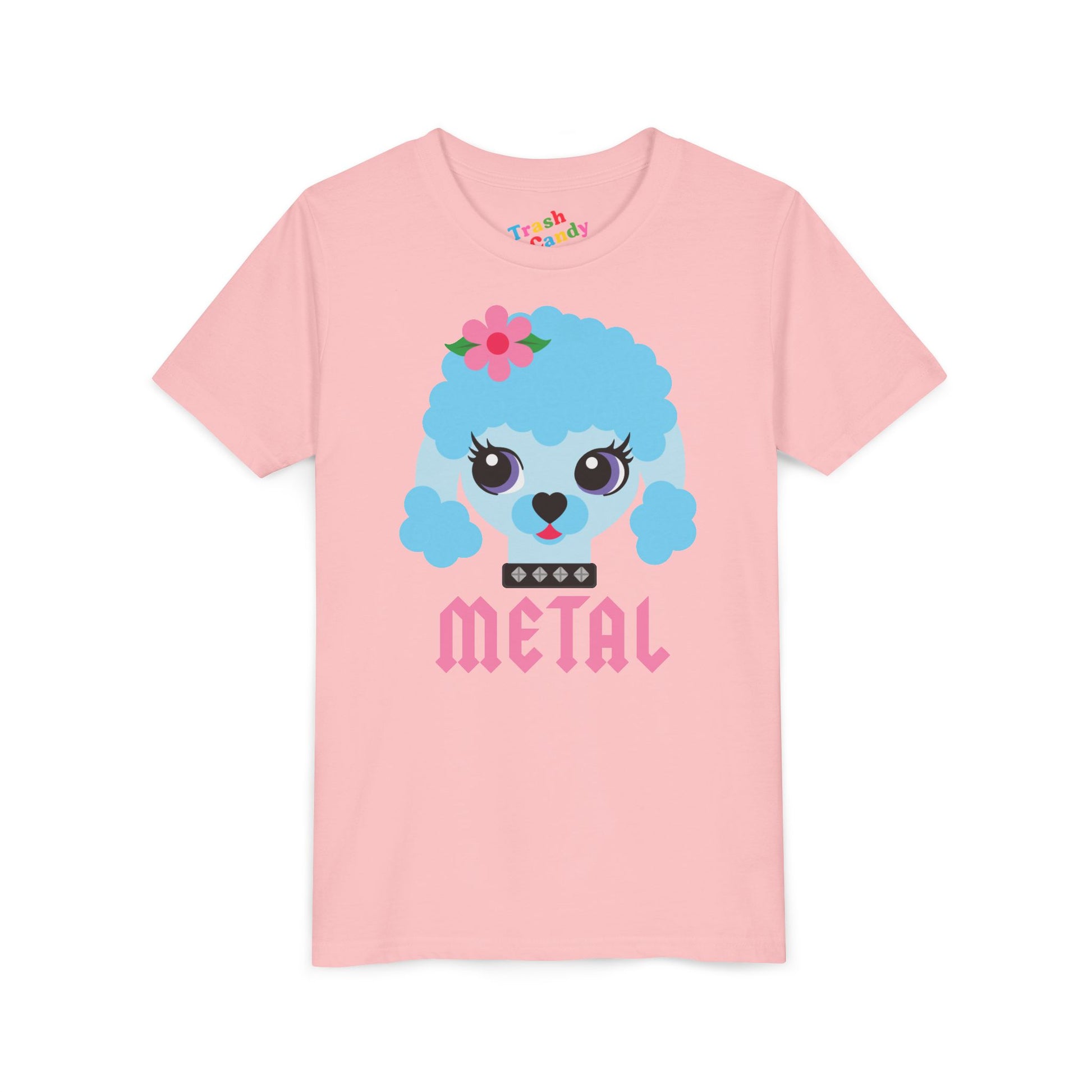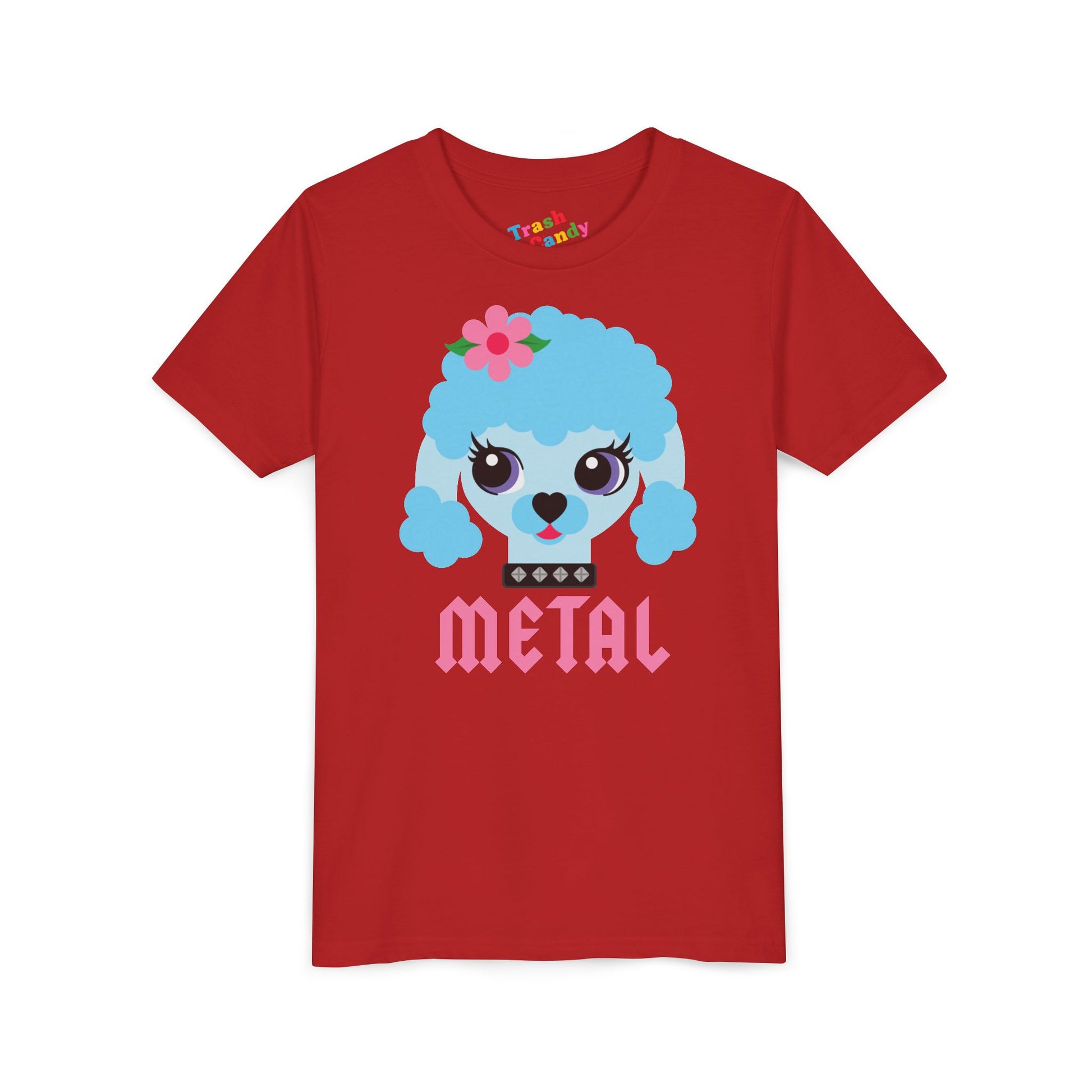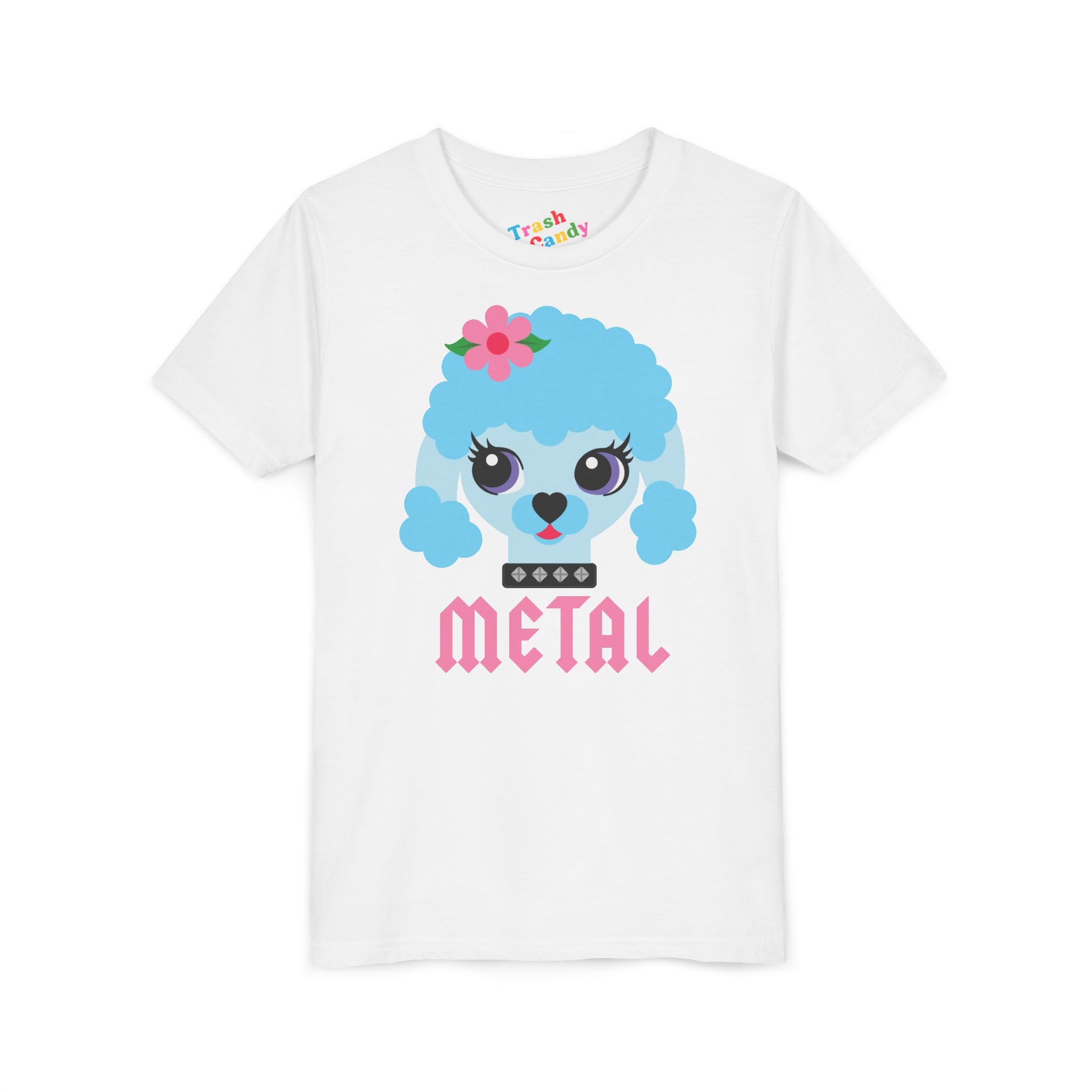Metal - cute poodle kids t-shirt! This tee features our exclusive Punky Tails character, "Freddy Chainsaw."