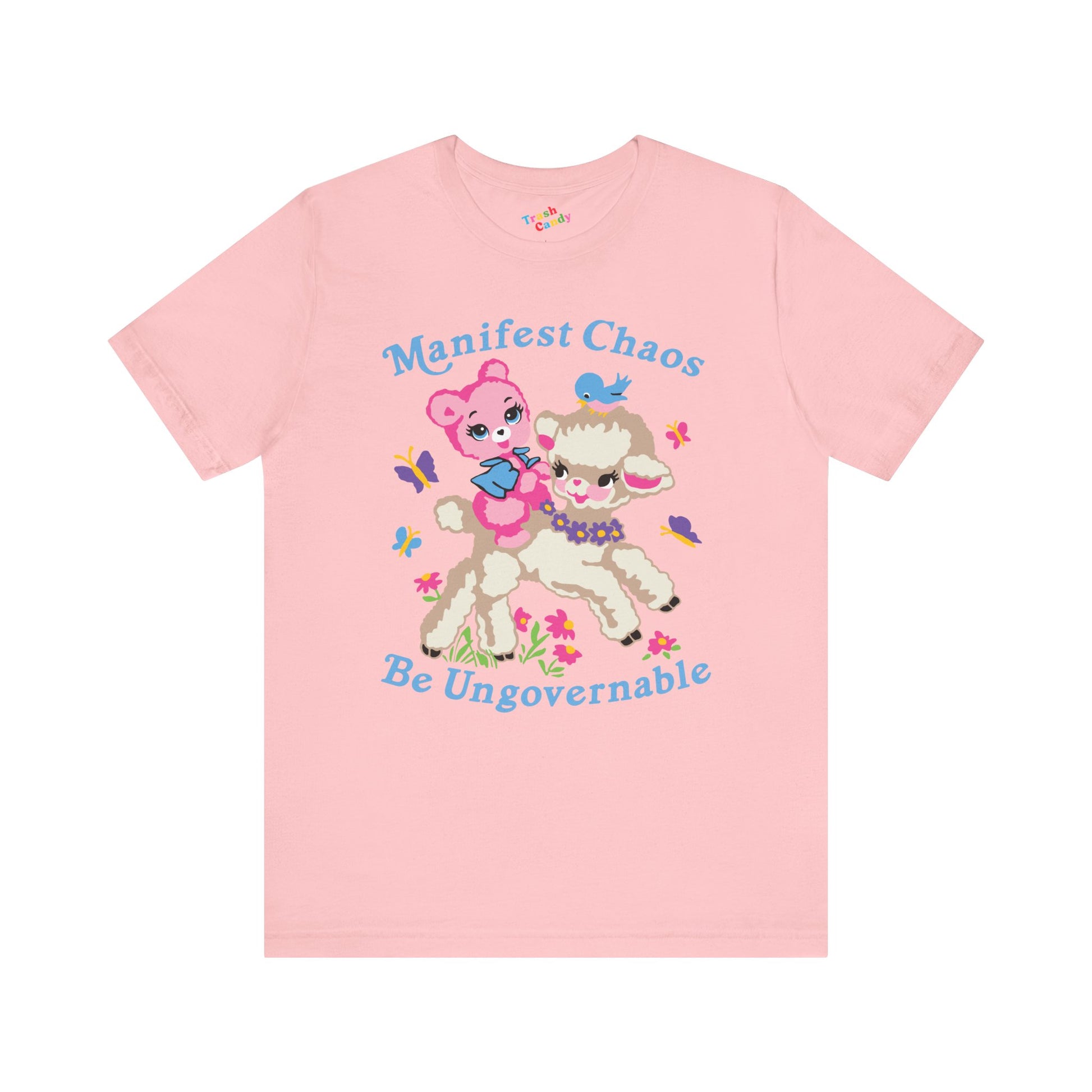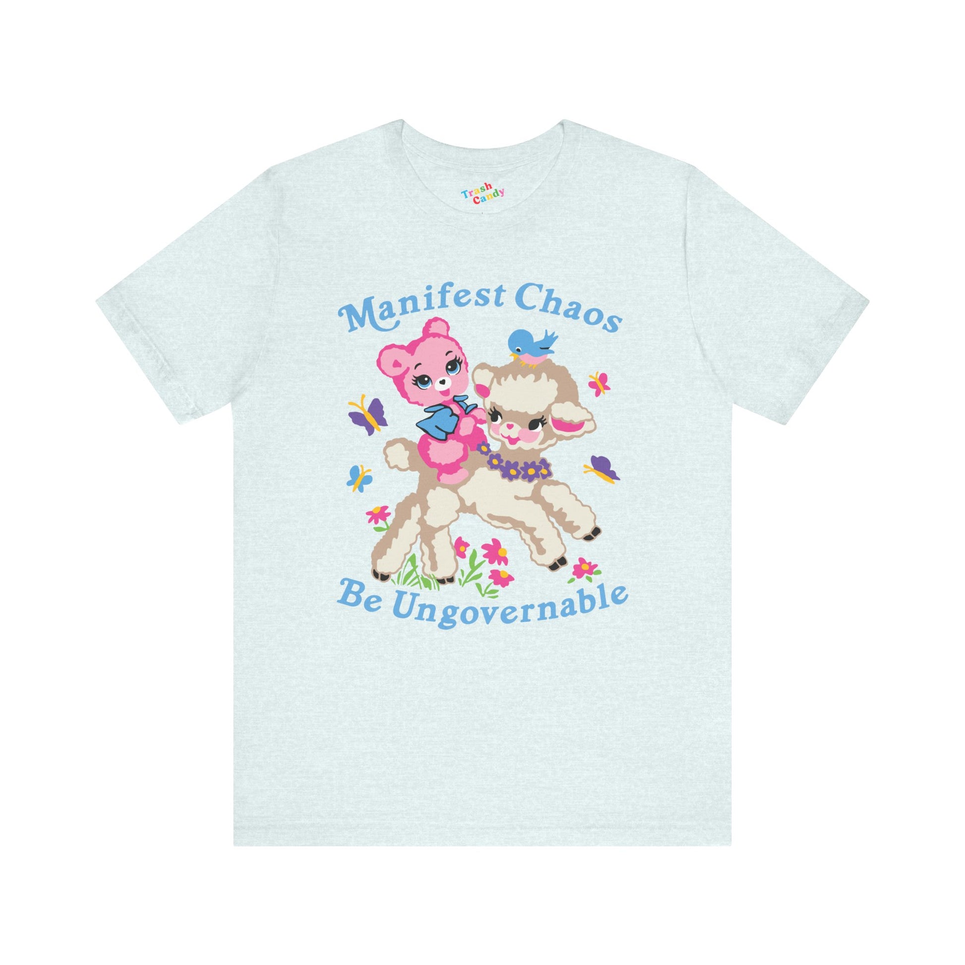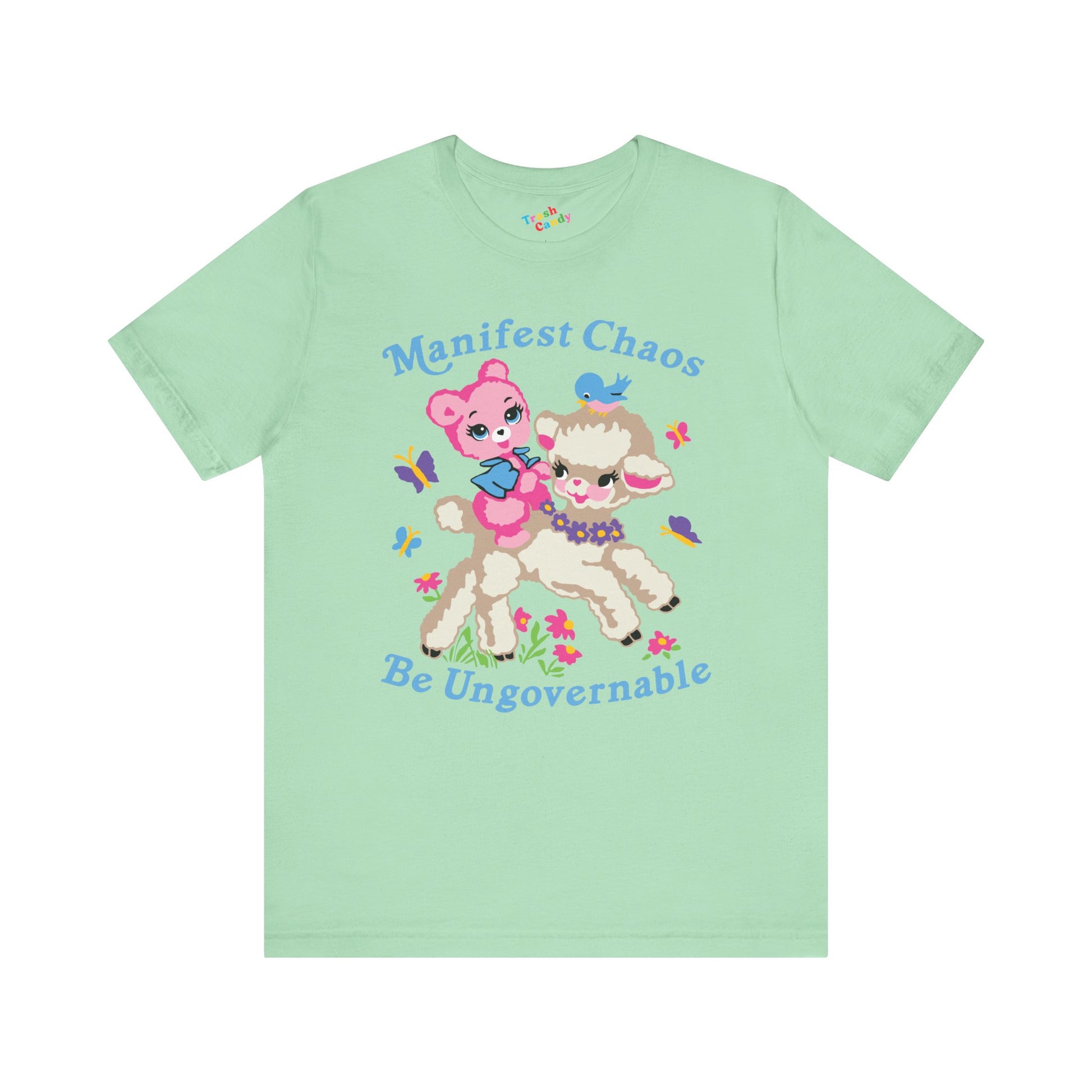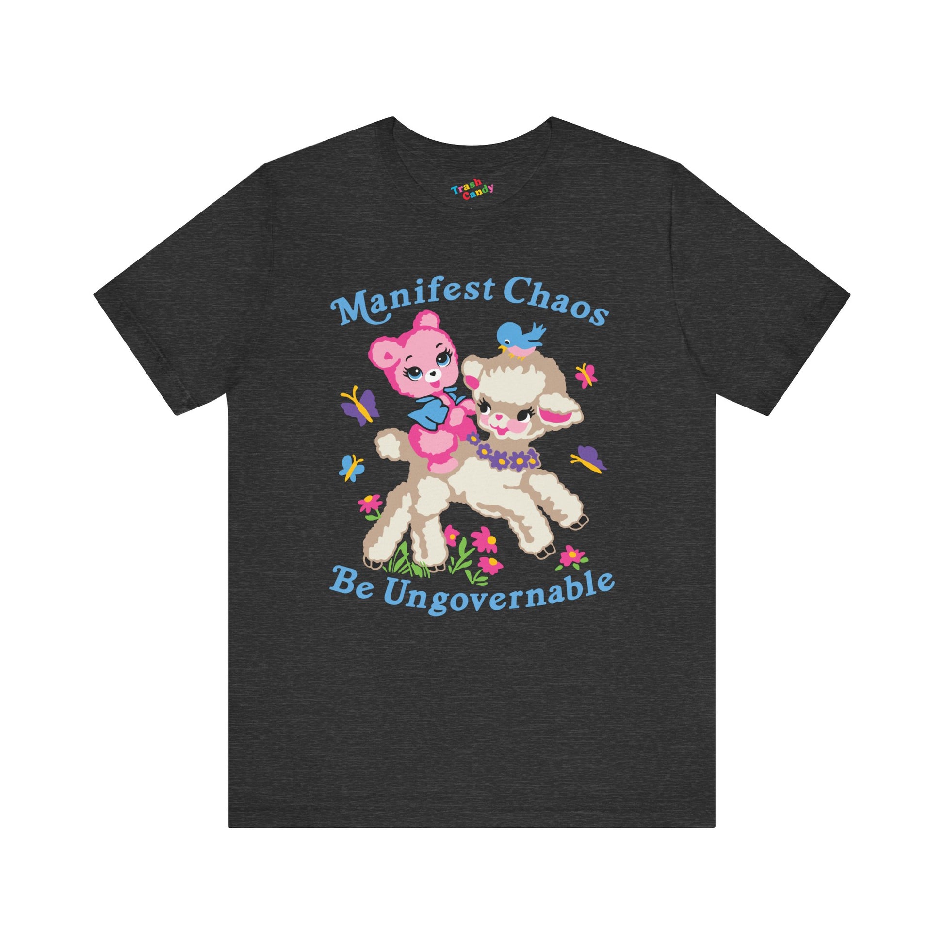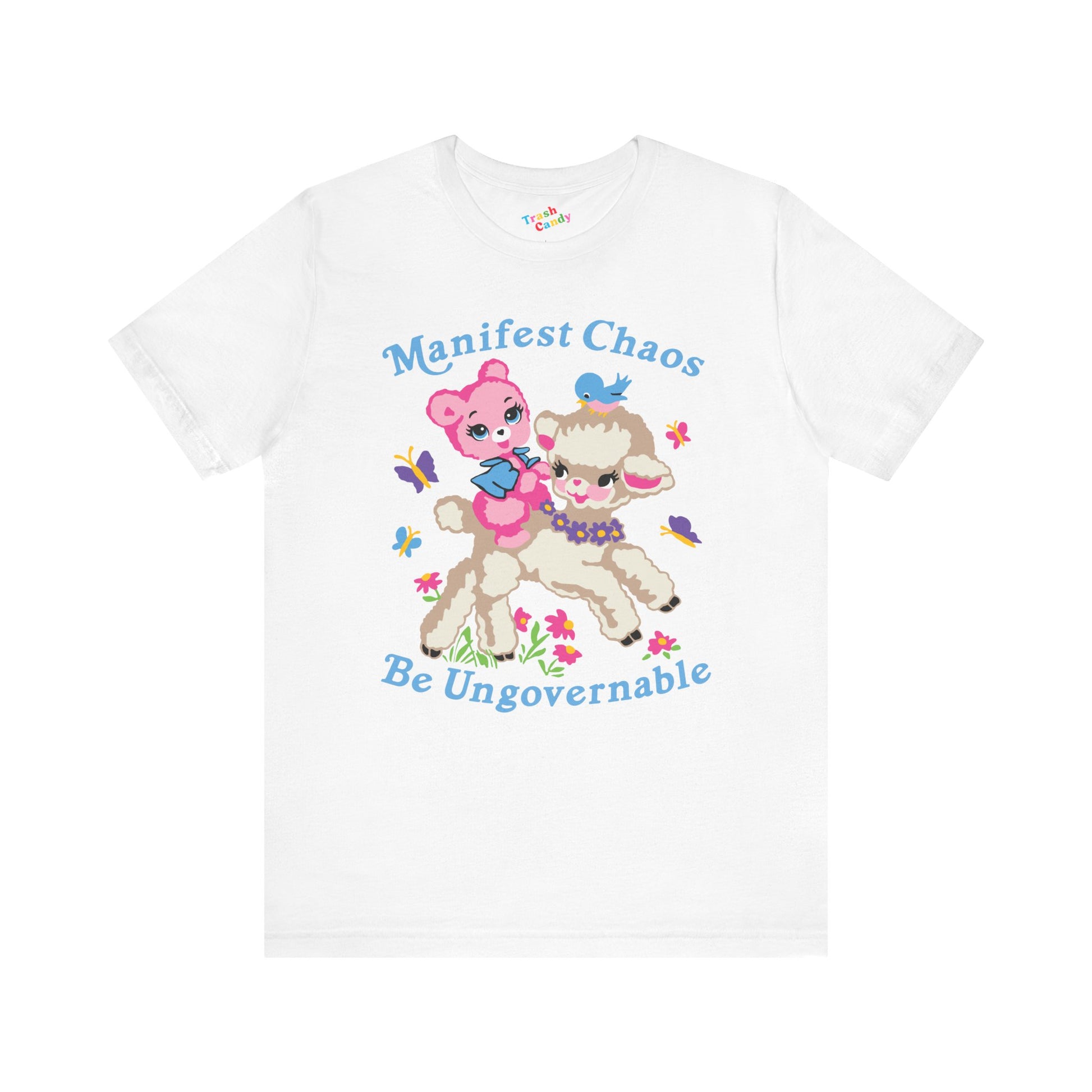 Manifest Chaos, Be Ungovernable - soft & comfy unisex tee, featuring our exclusive Punky Tails characters - "Punkin & Spicy!"