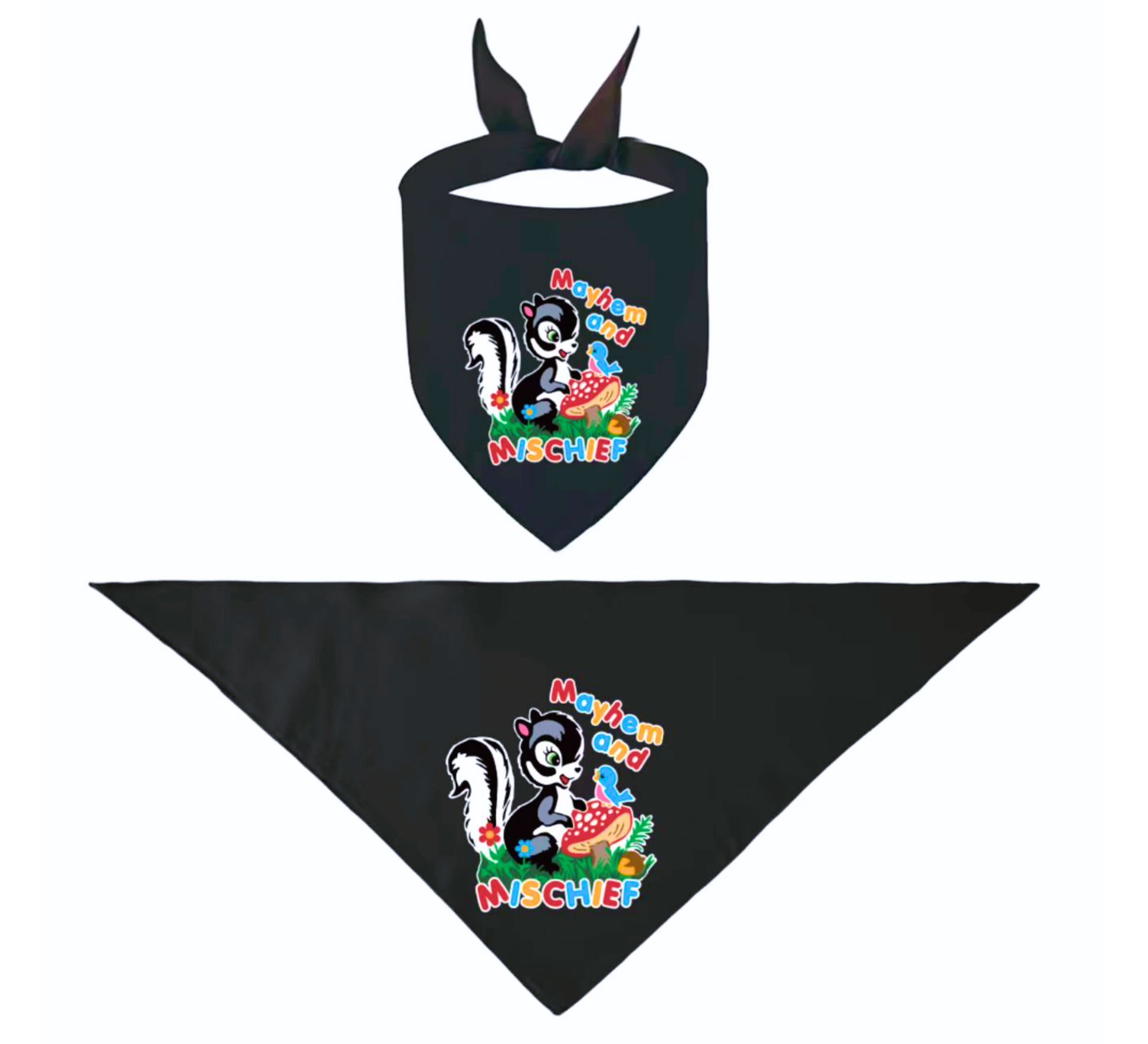 Mayhem and Mischief - cute retro pet bandana! This 100% cotton bandana features our exclusive Punky Tails characters "Mayhem & Mischief," and is available in three sizes.