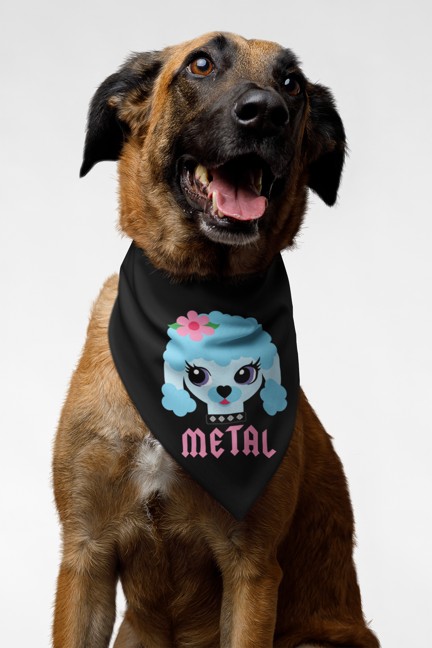 Metal - cute poodle pet bandana! This 100% cotton bandana features our exclusive Punky Tails character "Freddy Chainsaw," and is available in three sizes.