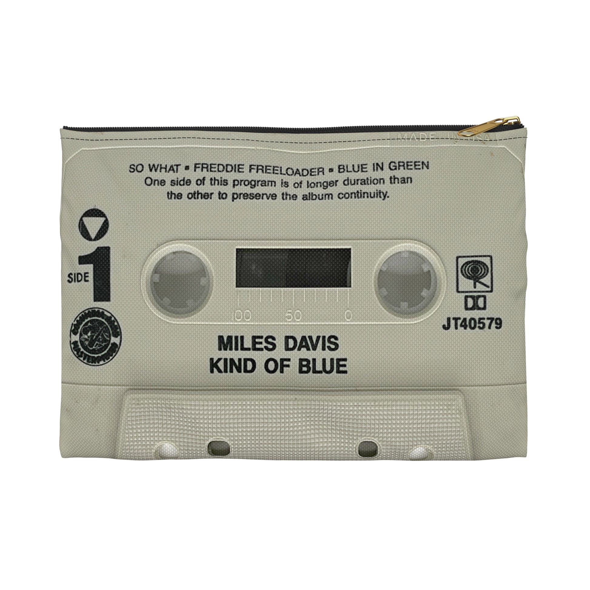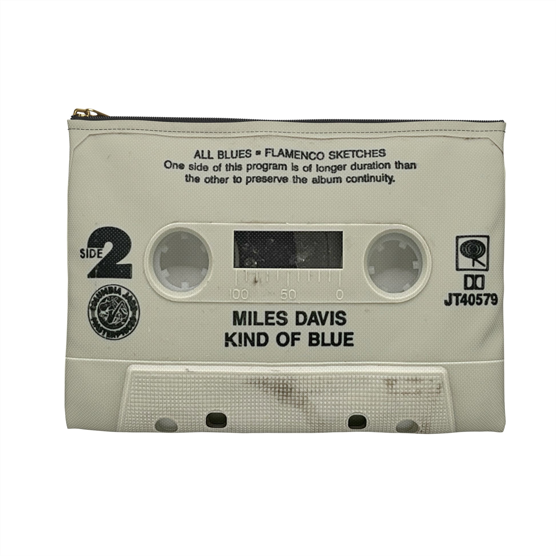 Miles Davis - Kind of Blue - cassette tape zipper pouch! This is a great sized pouch at 8" x 6", perfect for holding a few tapes of your own! Side A is on one side, and side B is on the other side. This image is taken from my own personal collection of tapes that I've had since the 80's (that have been lovingly played hundreds of times) and thus THERE WILL BE VISIBLE "FLAWS" IN THE PRINT, like smudges, scuffs and dirt.
