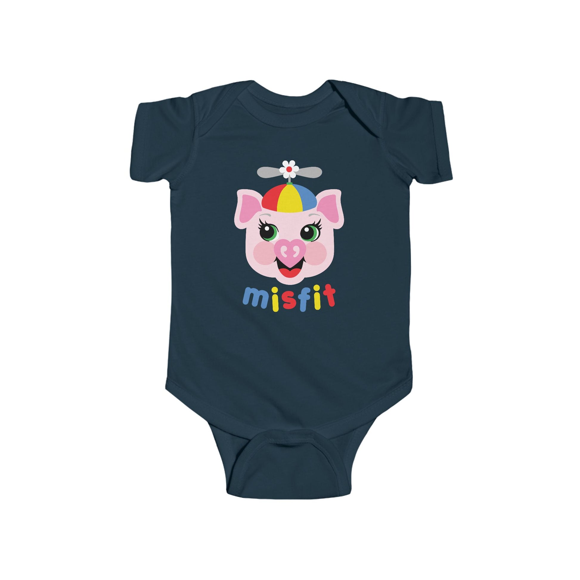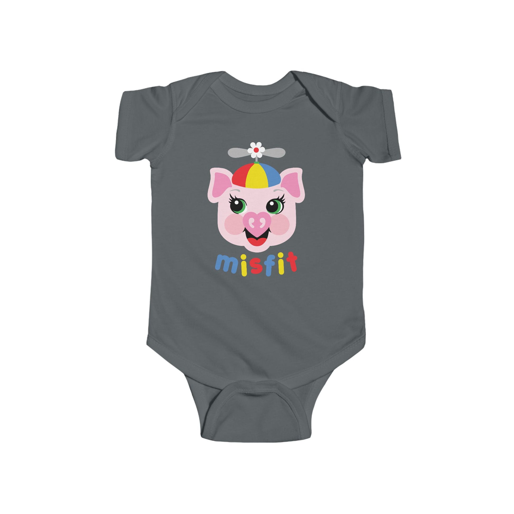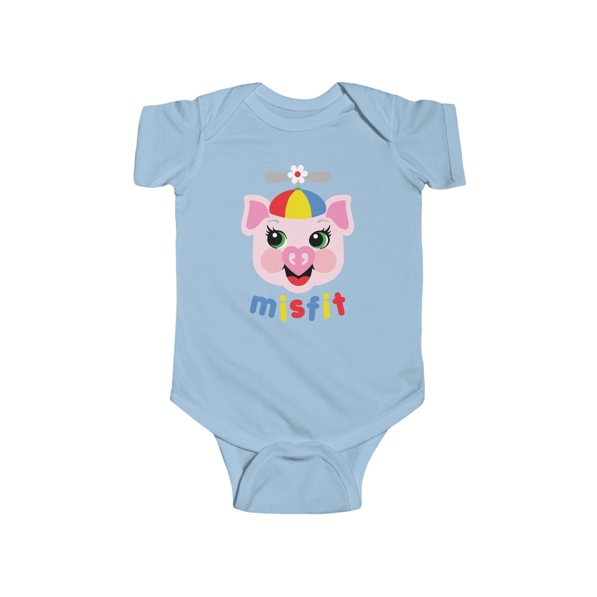 Misfit - cute pig baby bodysuit! This bodysuit features our exclusive Punky Tails character, "Pickles."