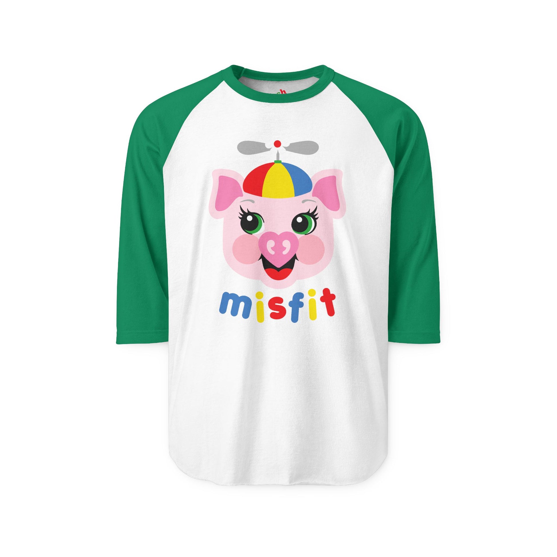 Misfit - cute retro unisex baseball tee, featuring our exclusive Punky Tails character - "Pickles!"