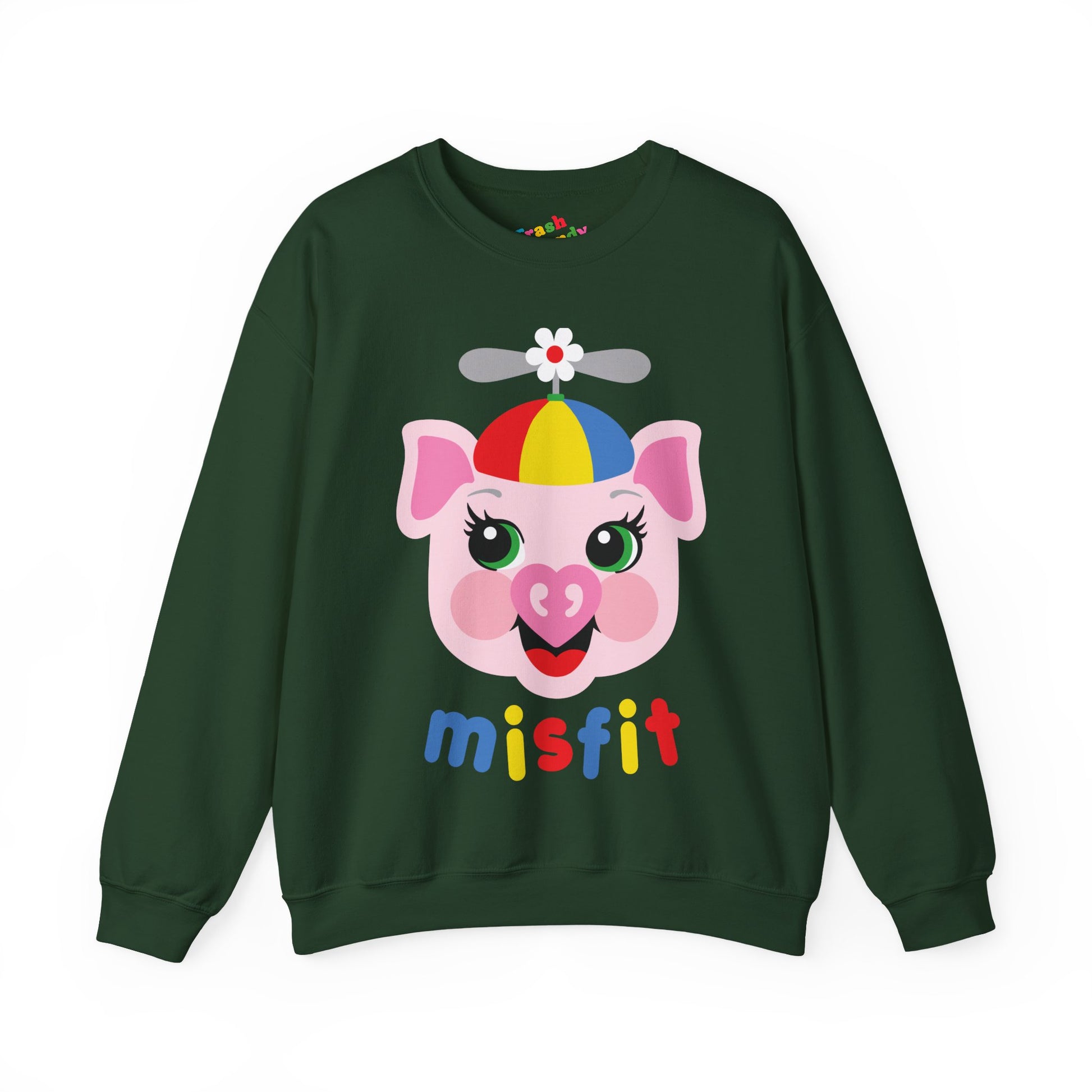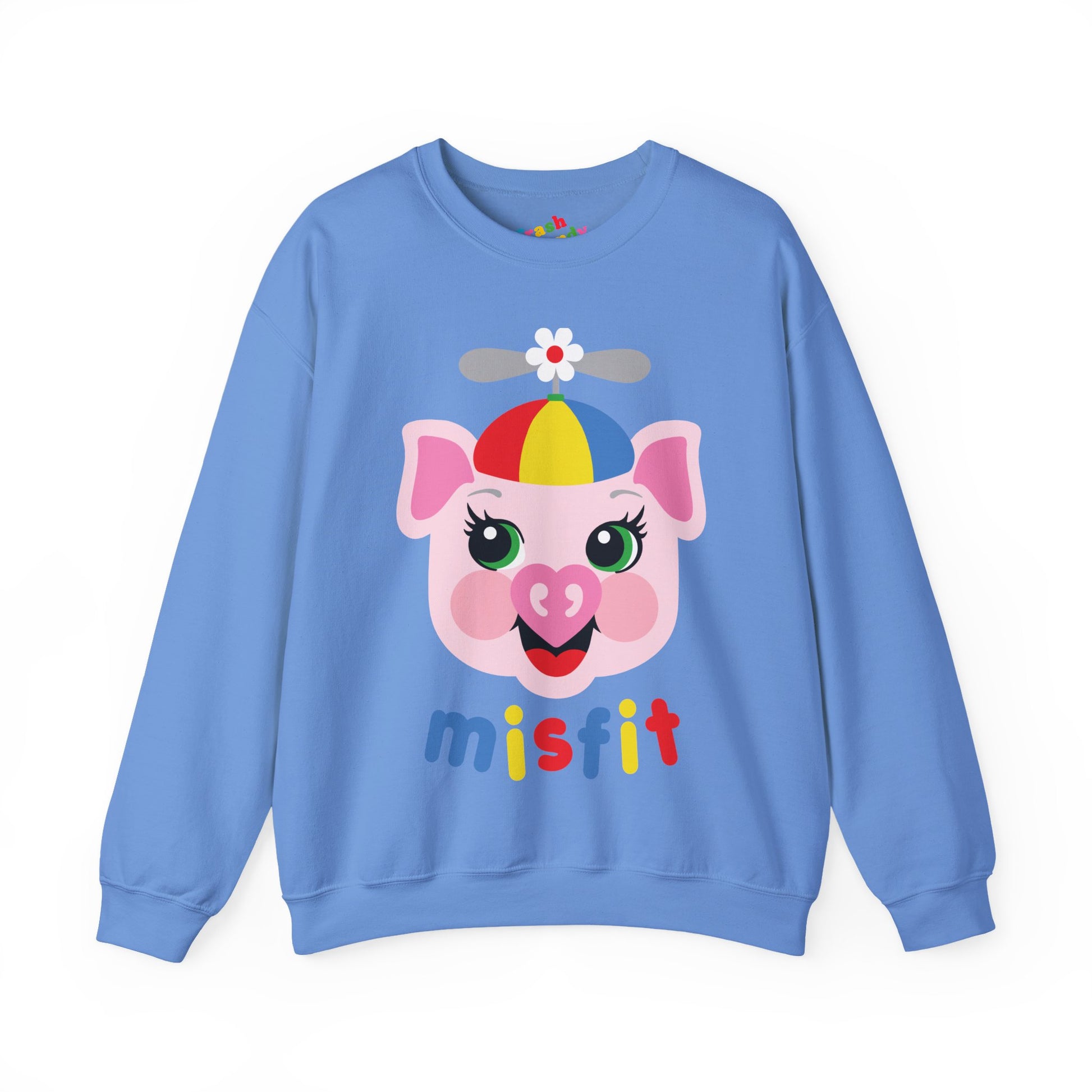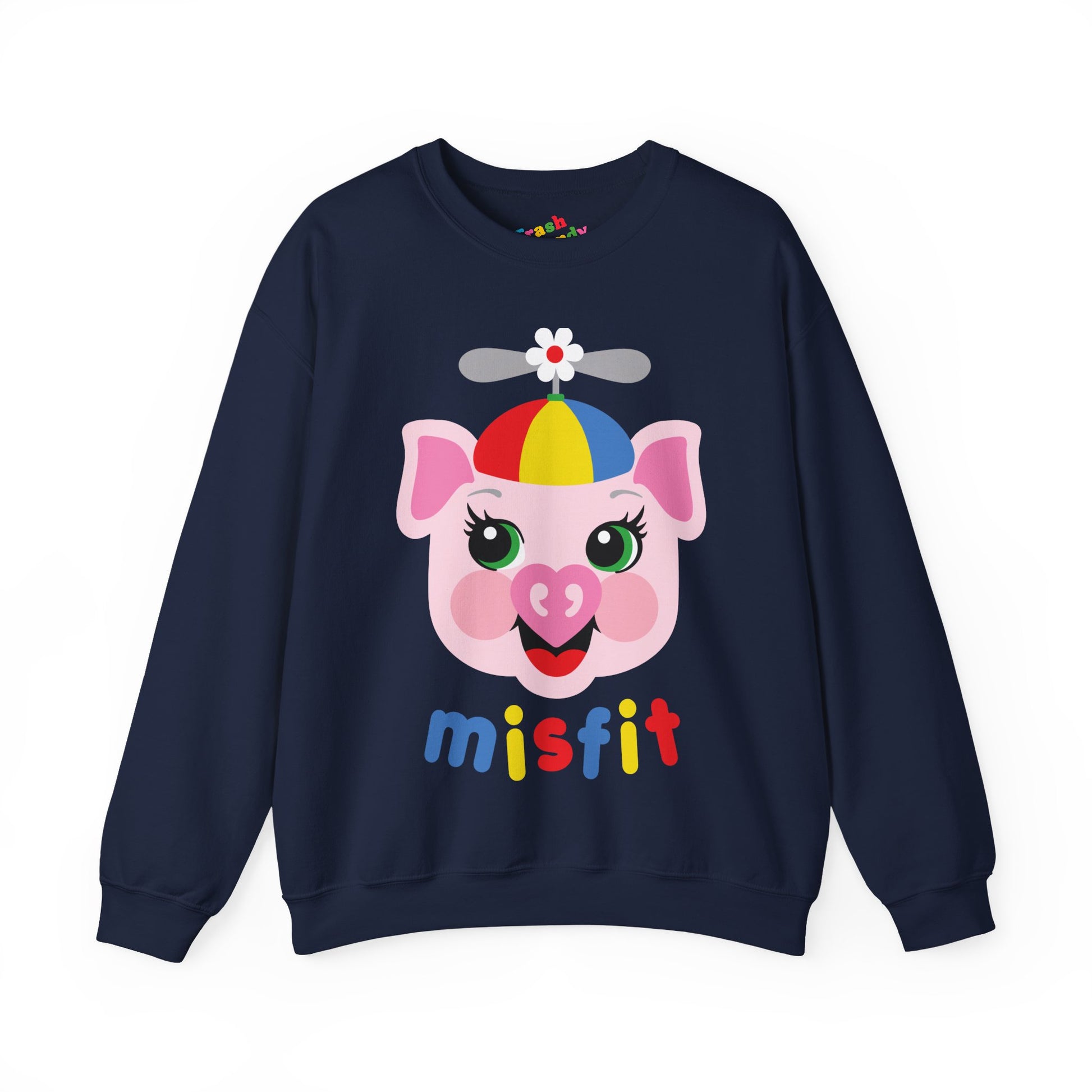 Misfit - cute piggy unisex sweatshirt, featuring our exclusive Punky Tails character - "Pickles!"