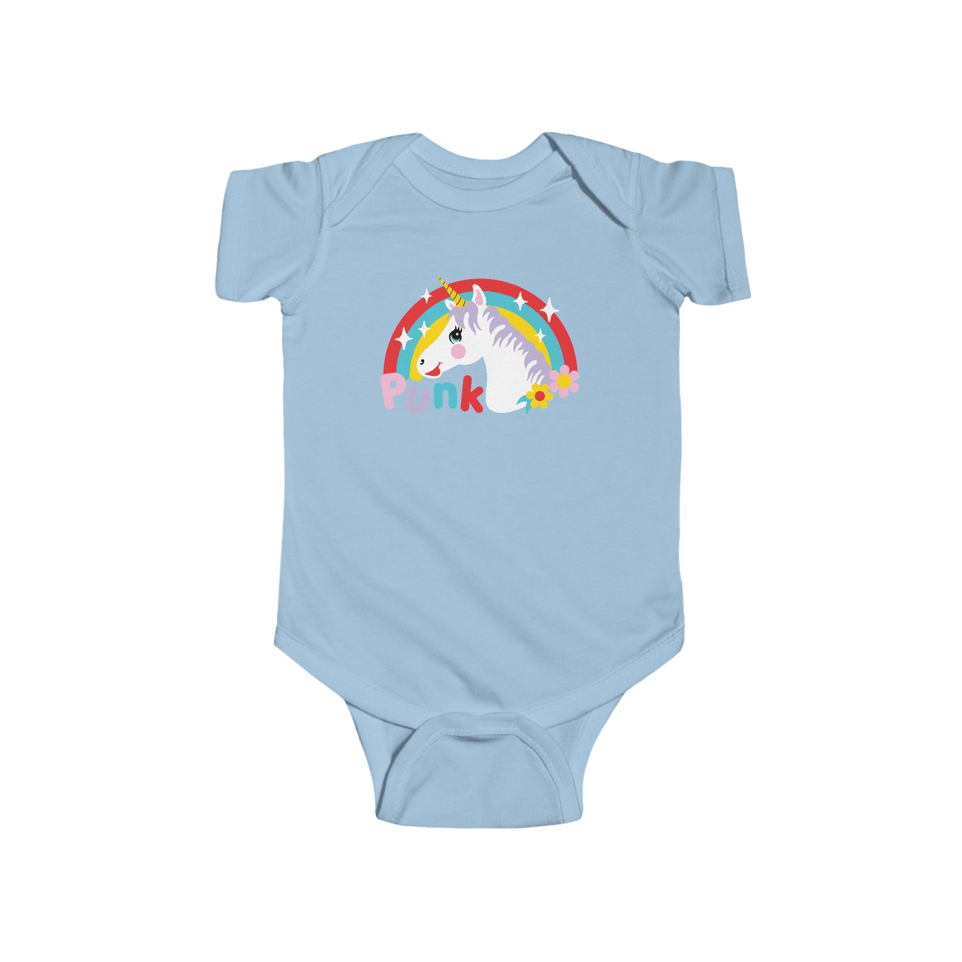 Punk - cute unicorn baby bodysuit! This bodysuit features our exclusive Punky Tails character, "Sprinkles."
