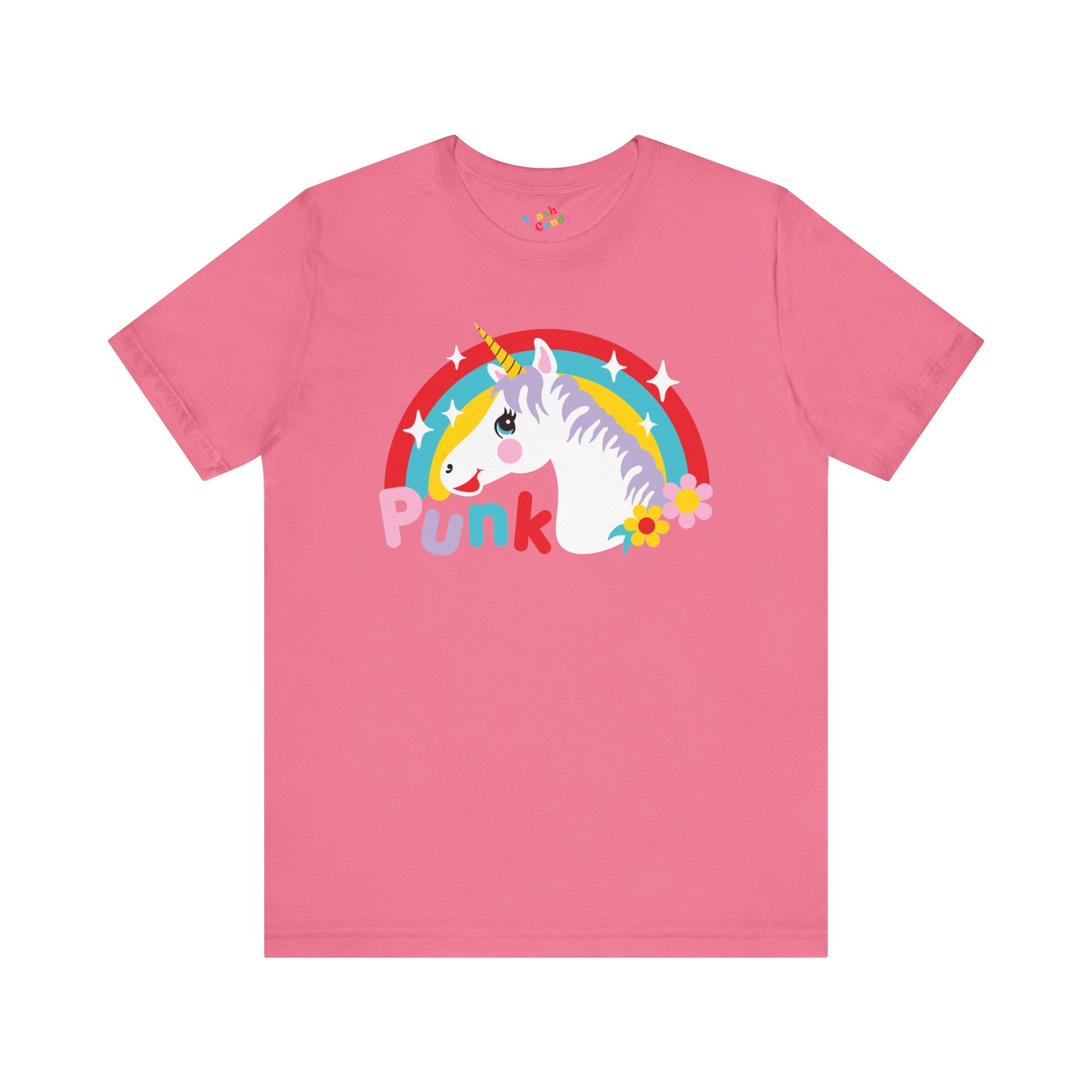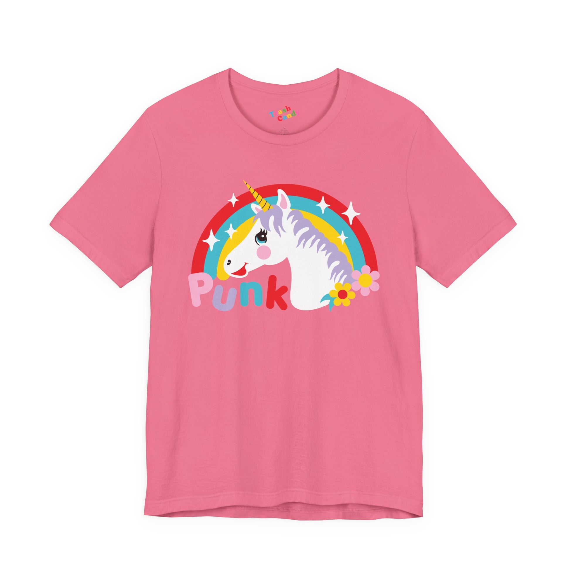 Unicorns aren’t all rainbows and glitter—some throw elbows in the mosh pit. Meet our exclusive Punky Tails character, "Sprinkles" - your pastel-punk partner in crime, printed on a super soft and comfy unisex cotton tee.