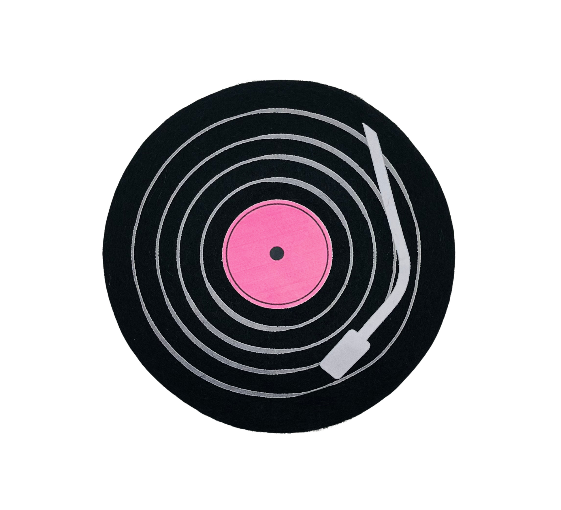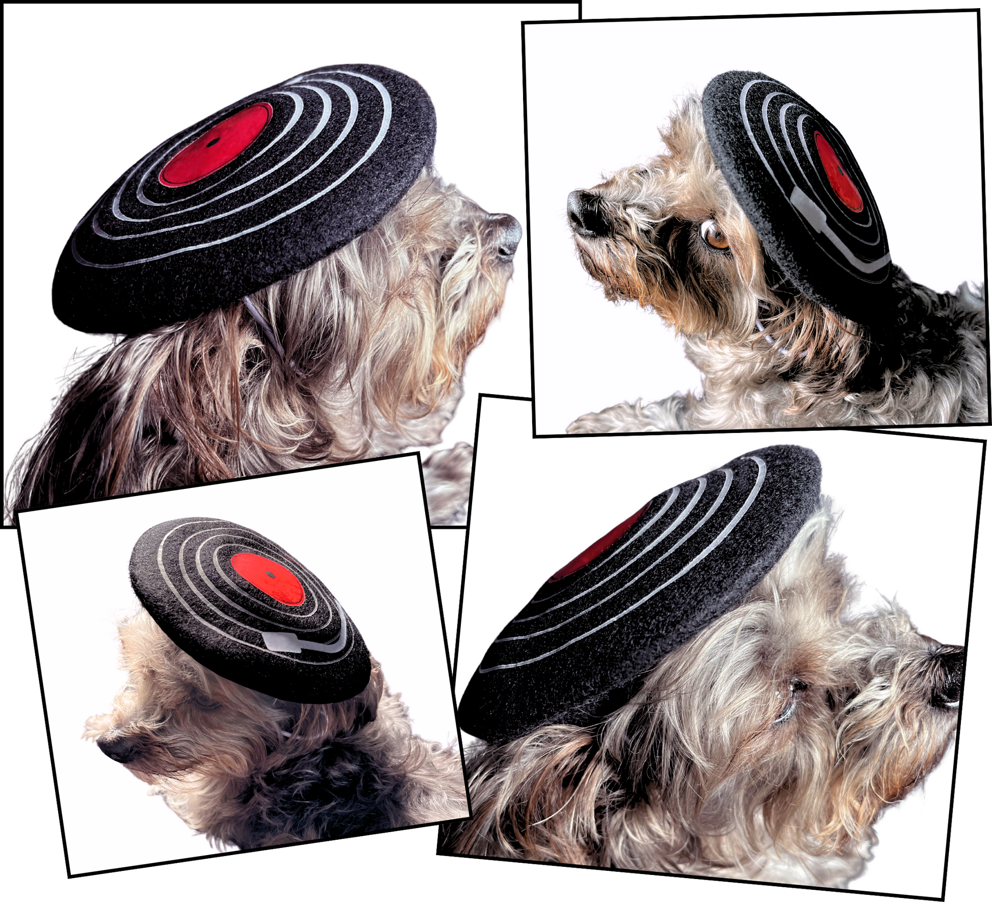 Vinyl Record Pet Berets - a Trash Candy exclusive! These are 6" wool berets with a fun vinyl record design. Each beret comes with an adjustable elastic strap, and are suitable for cats and small-medium sized dogs. Choose from: red, pink or blue.