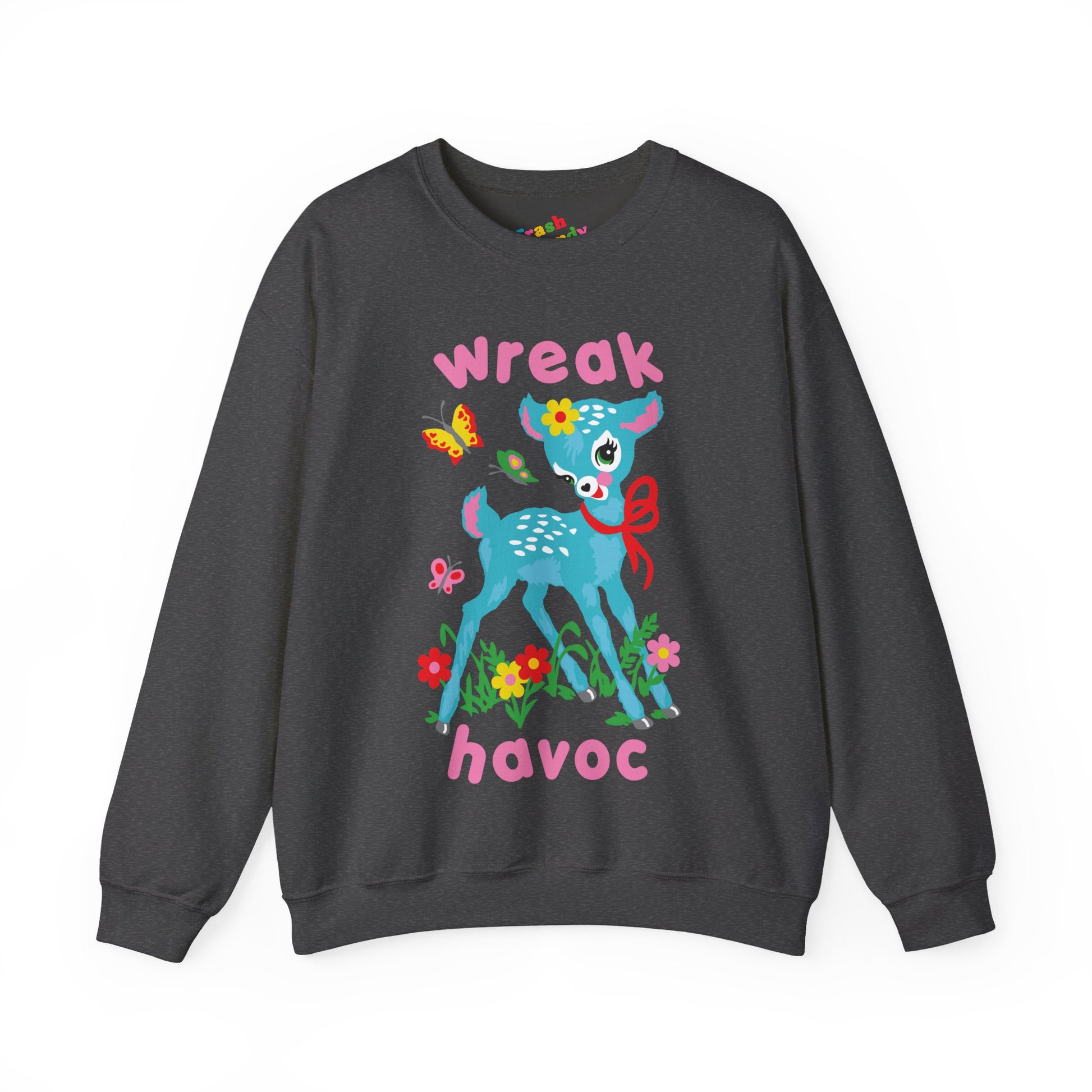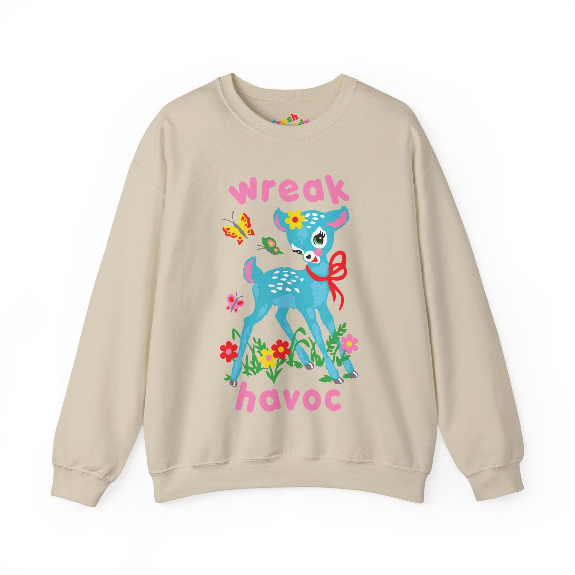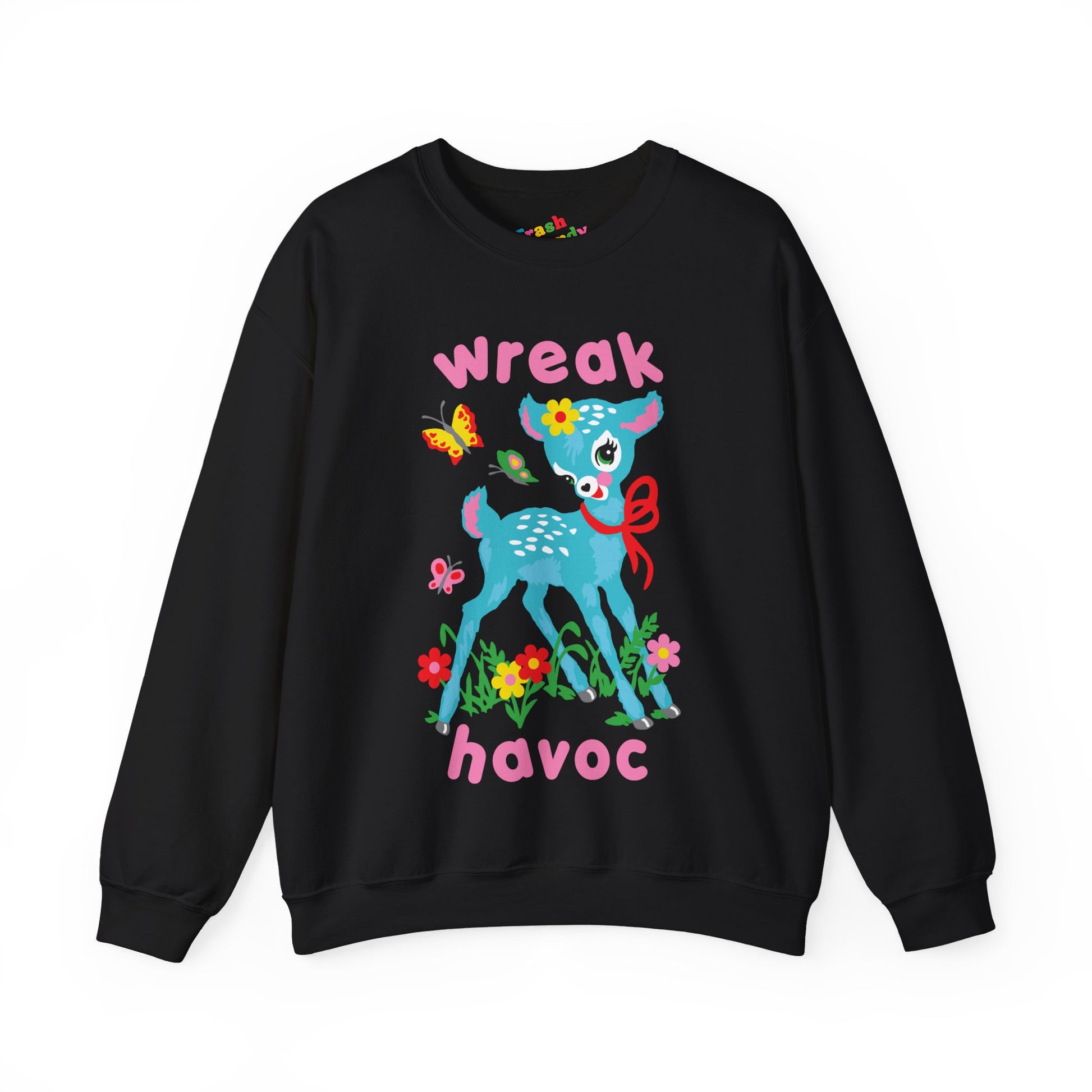 Wreak Havoc - cute deer warm & cozy unisex sweatshirt, featuring our exclusive Punky Tails character - "Daisy Knuckles!"