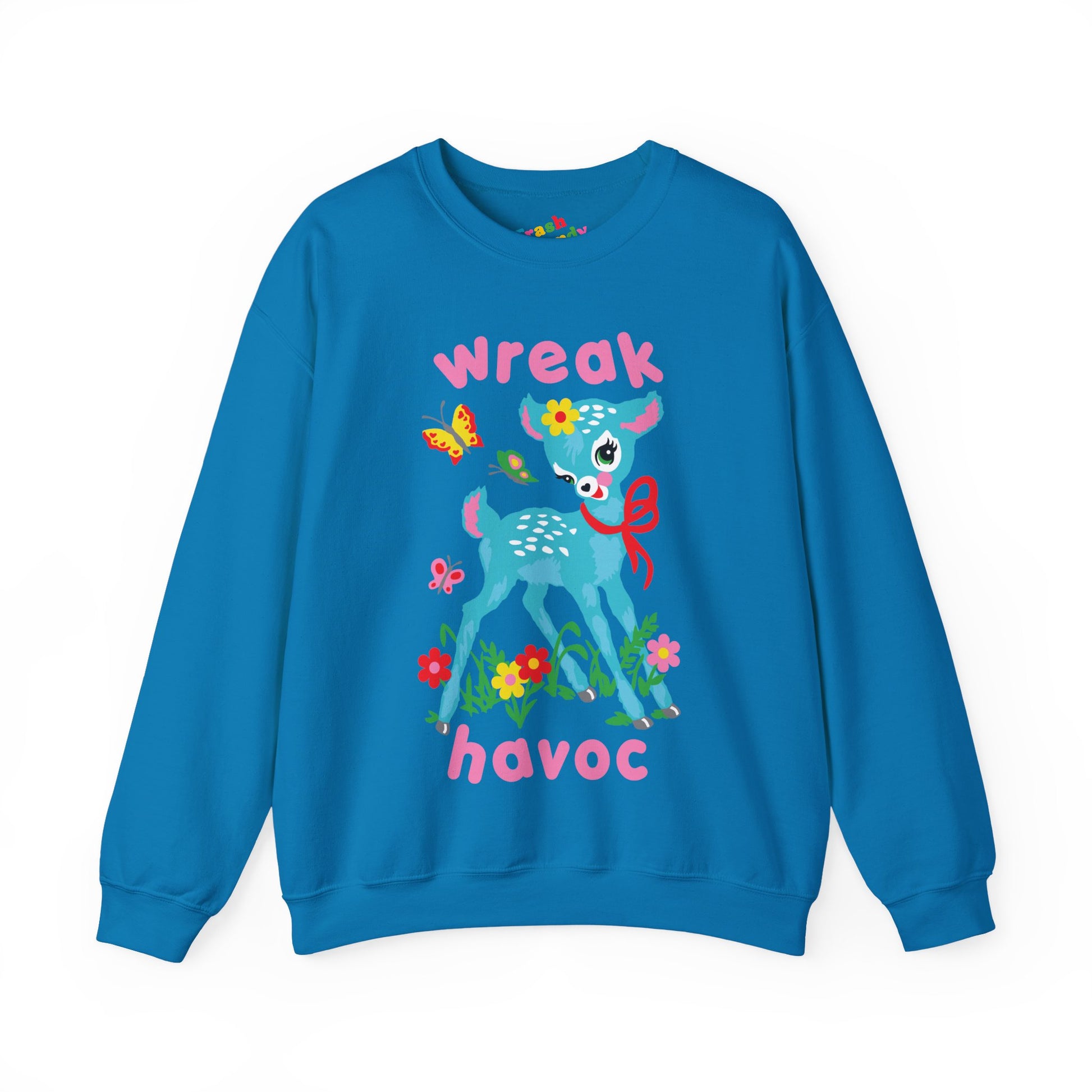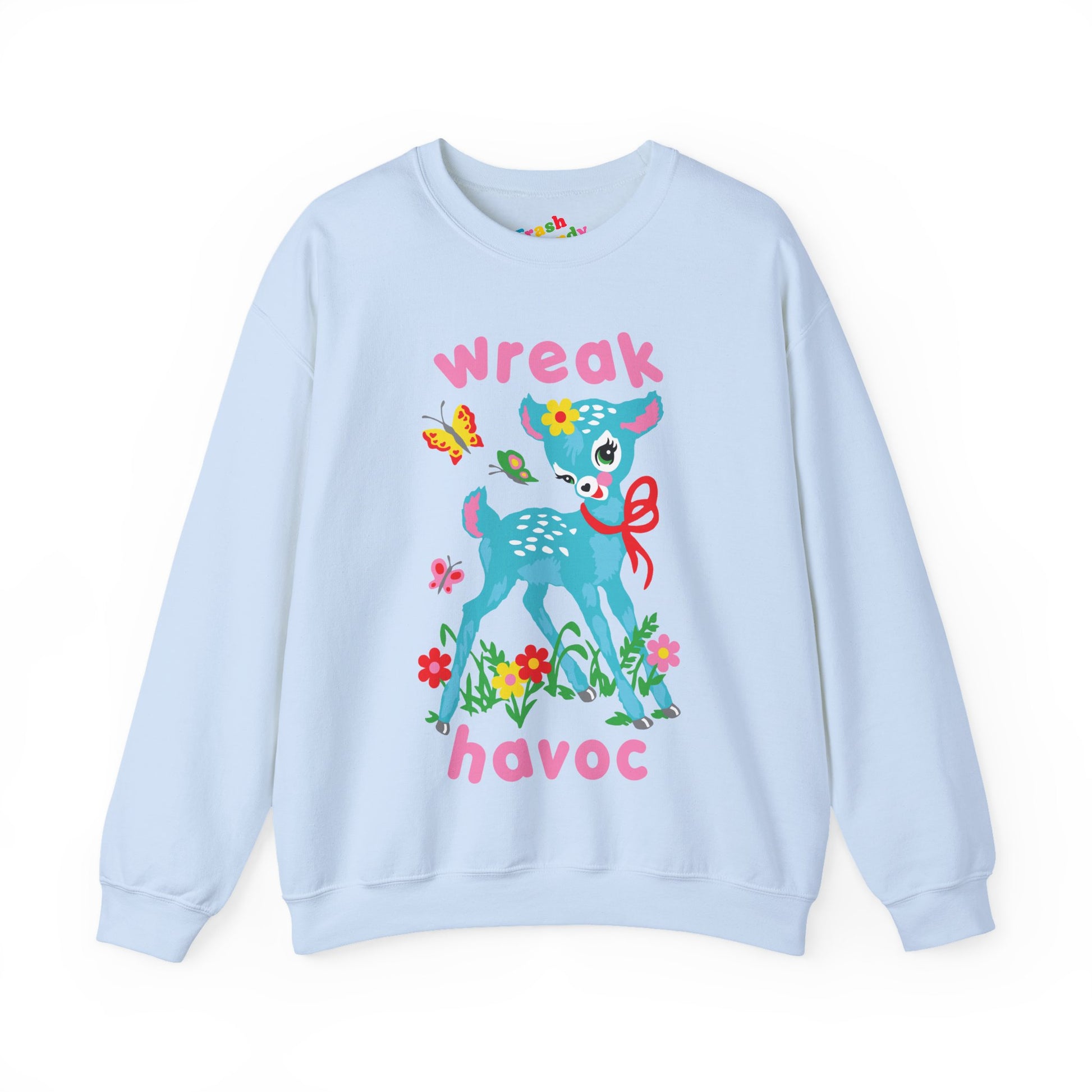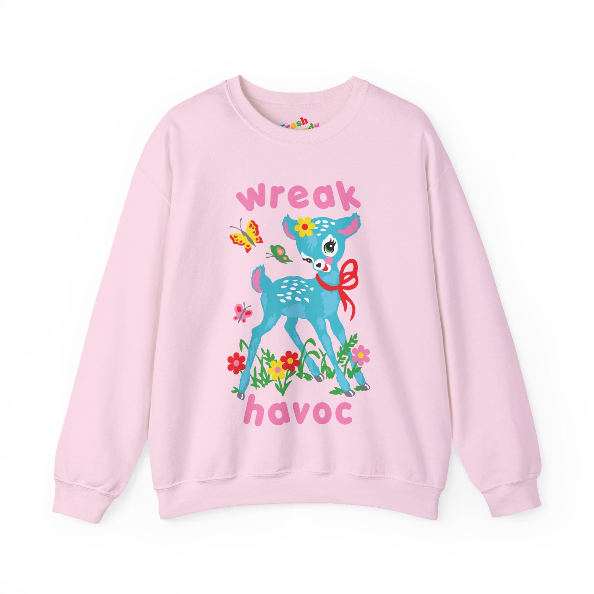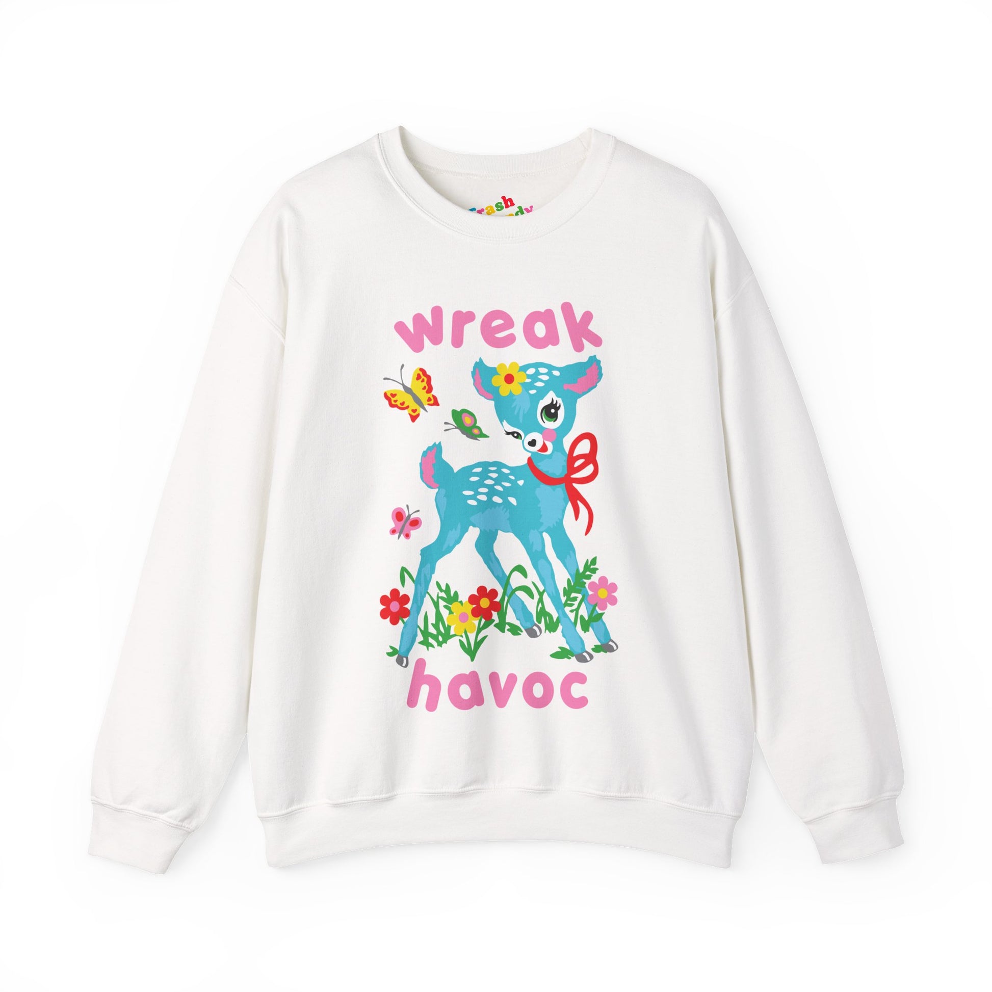 Wreak Havoc - cute deer warm & cozy unisex sweatshirt, featuring our exclusive Punky Tails character - "Daisy Knuckles!"